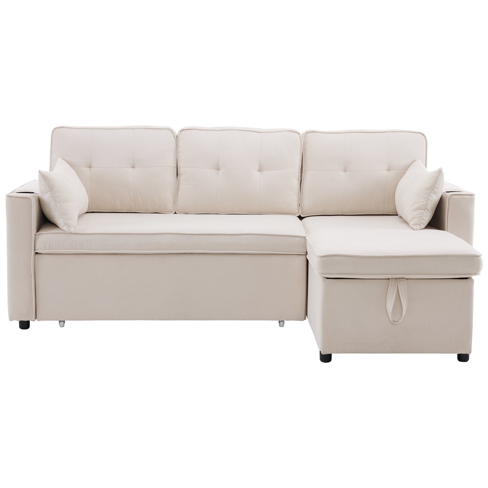 This L-shaped sectional sleeper sofa offers three convertible forms: sofa, trundle bed, and daybed. With the straps and bottom wheels, it can be easily converted from a comfortable recliner to a spacious sleeper sofa. Whether you are watching your favorite shows or hosting friends, this space-saving couch provides the perfect balance of functionality and comfort.
