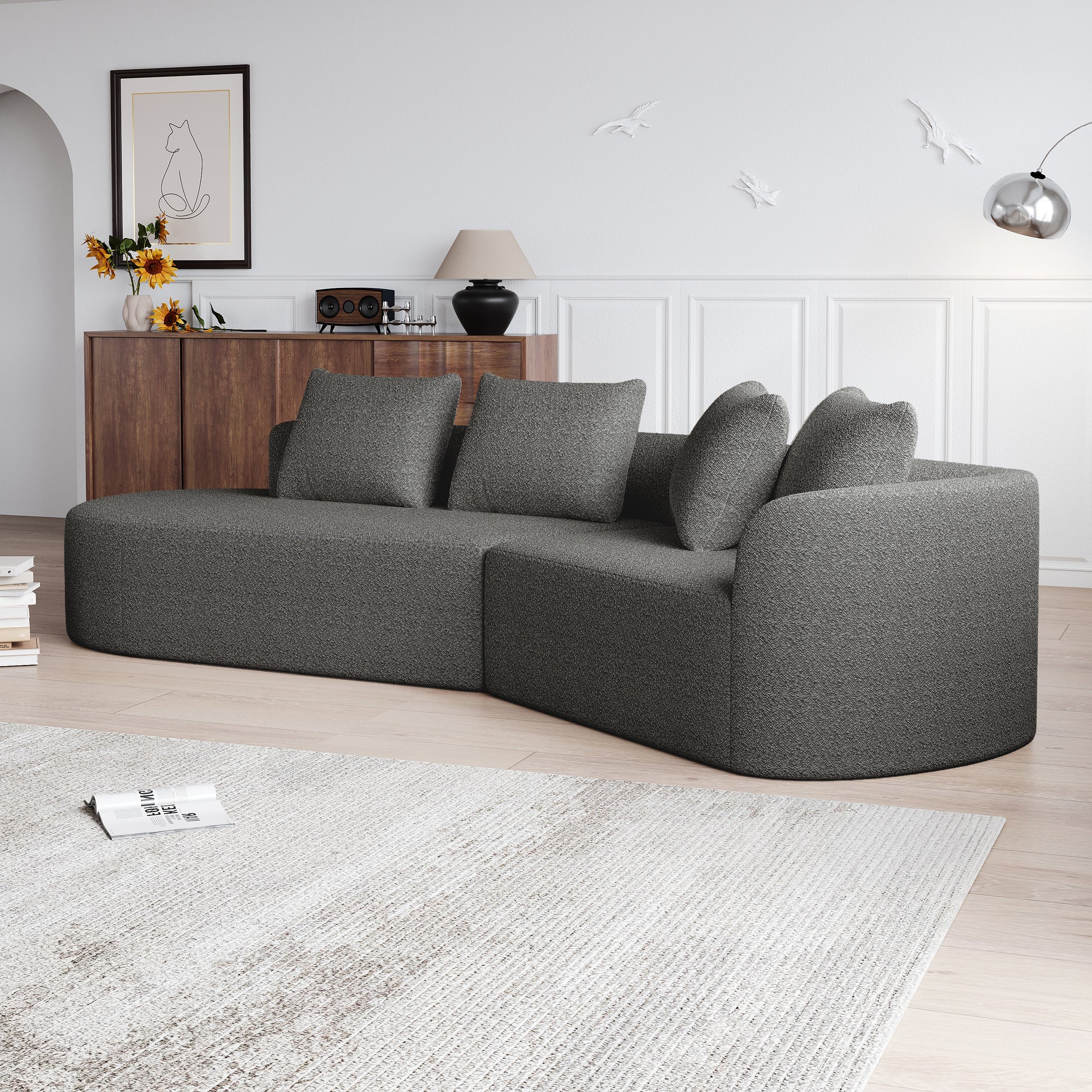 Chenille Sofa, Modern Oversized Corner, 4-Seater, Deep & Wide Seat, Cloud, Chenille