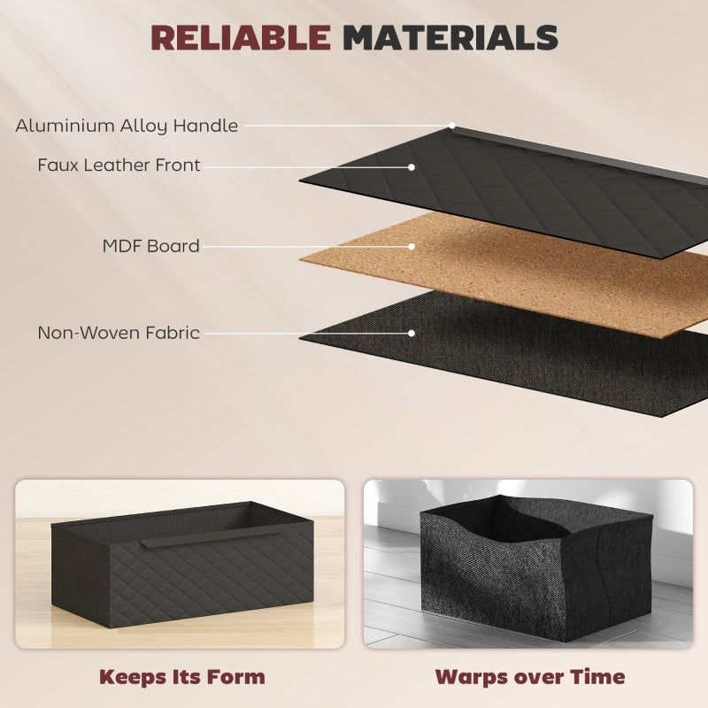 Give your room an instant style boost! With diamond-patterned faux leather drawer fronts, a wood-effect frame, and sleek black handles, this fabric dresser creates a modern look and lived-in feel that your home will adore.