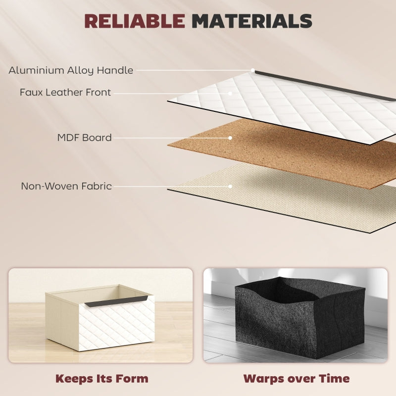 Give your room an instant style boost. With diamond-patterned faux leather drawer fronts, a wood-effect frame, and sleek black handles, this fabric dresser creates a modern look and lived-in feel your home will adore.