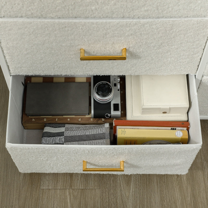 Elegant Design: This dresser with drawers features a luxurious sherpa fabric finish, elegant gold-tone handles, and a 3D grained surface that enhances any living room, bedroom, hallway, or entryway, creating a warm and inviting atmosphere.