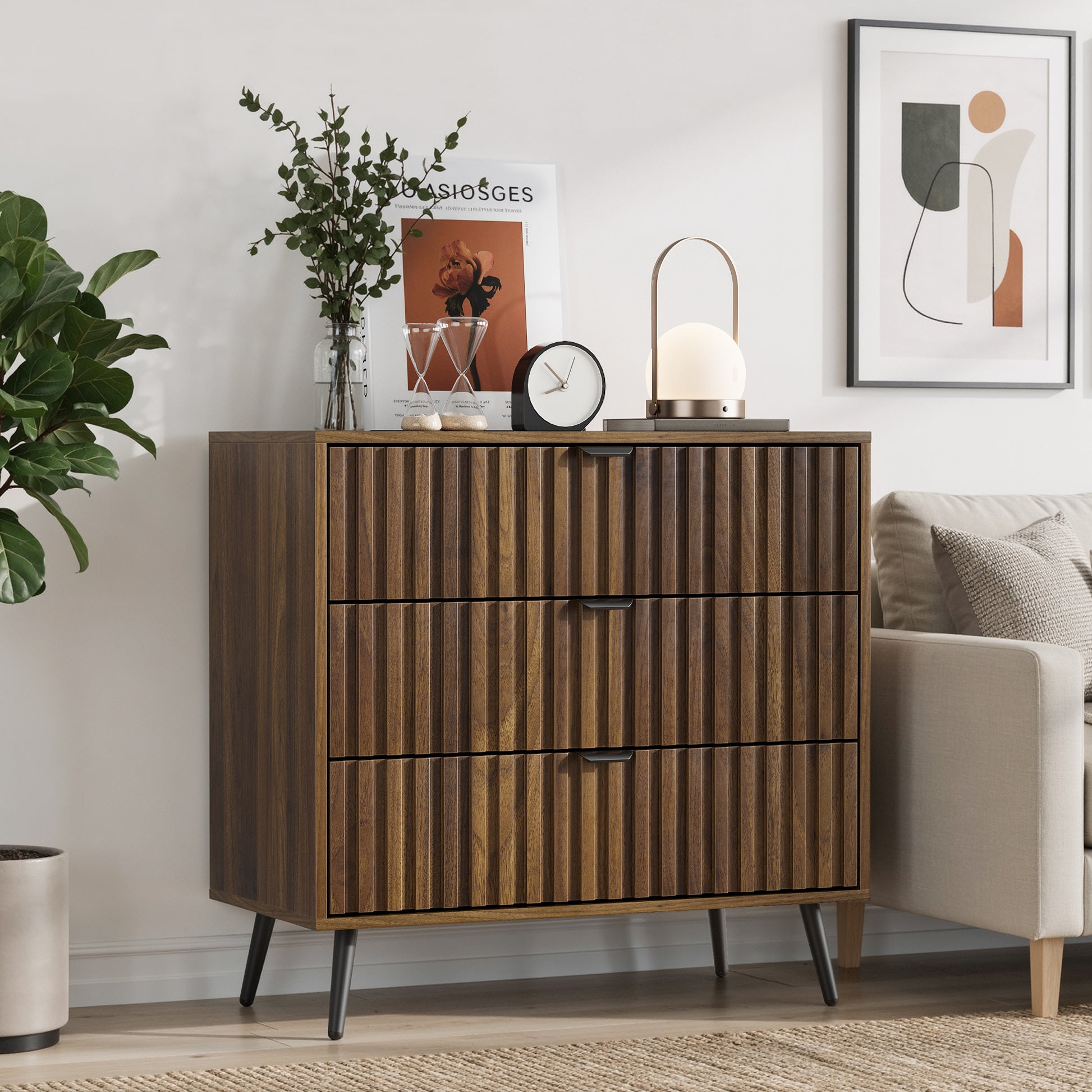 Chest of Drawers Storage Cabinet 3 Drawers Wooden Walnut Color
