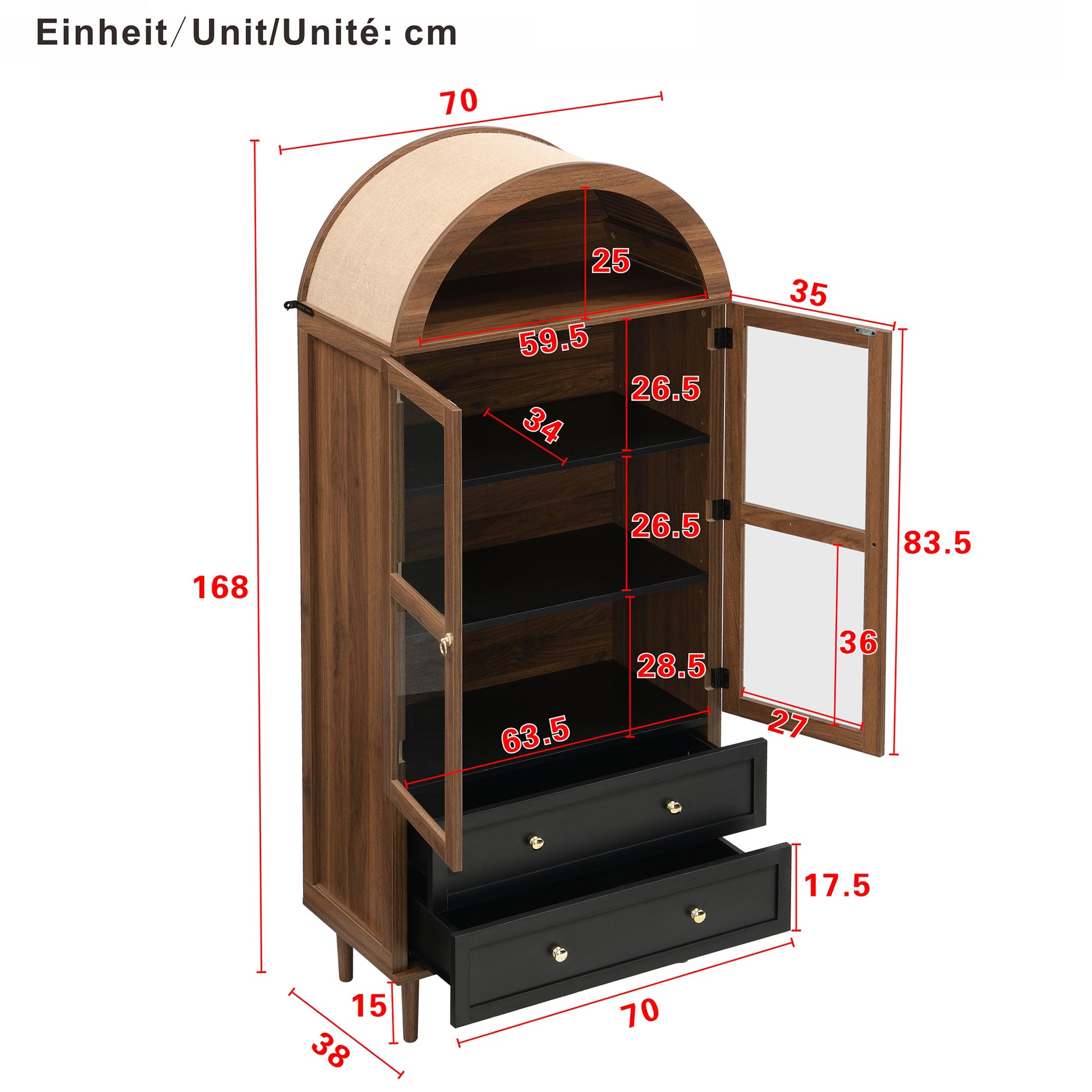 Overall Dimensions: 70L x 38W x 165H (cm)
