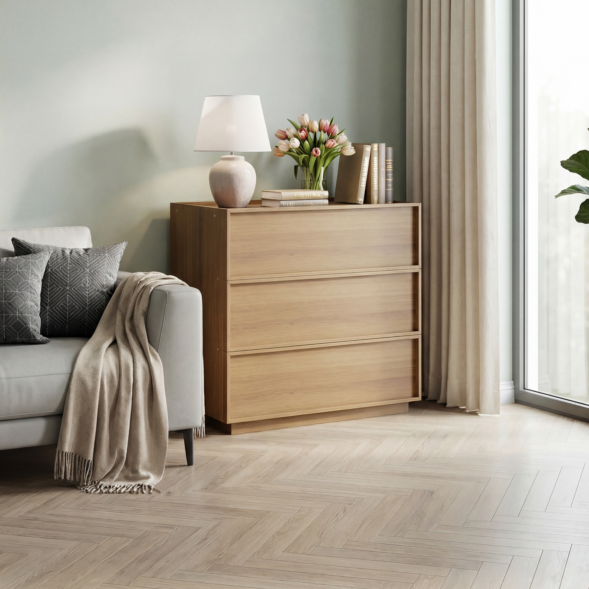 Chest of Drawers with 3 Storage Drawers and Metal Rails, Oak Wood Look