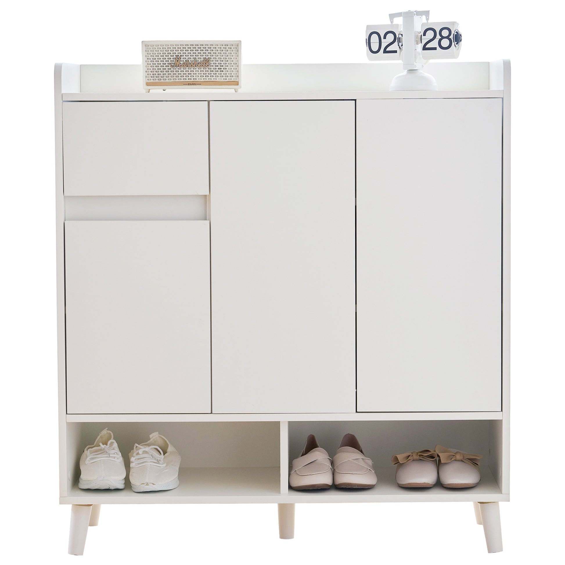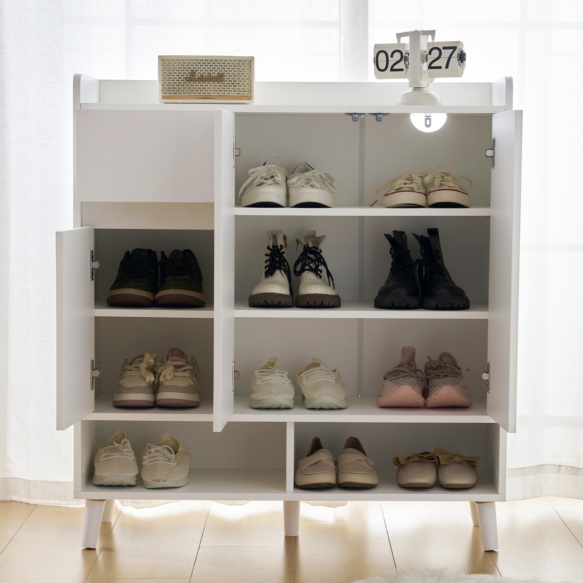 The shoe cabinet can accommodate various types of items.