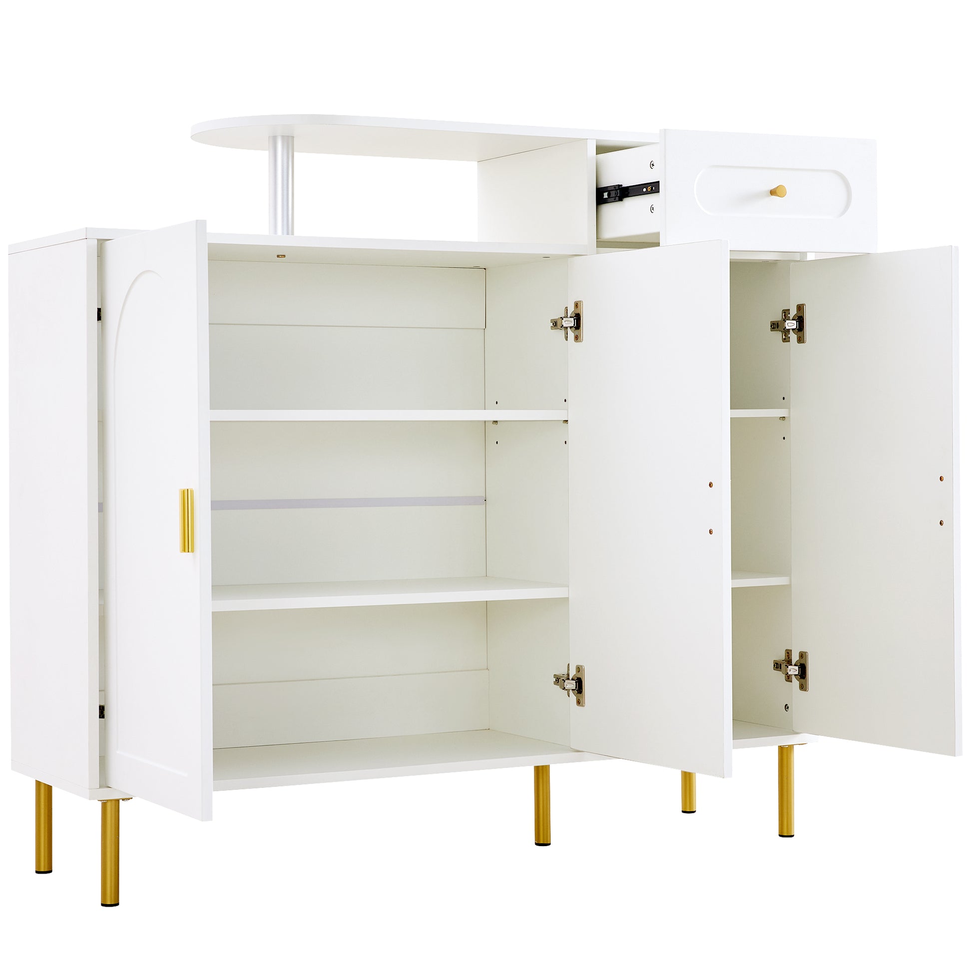 Chest of Drawers with Metal Handles, 1 Drawer, 3 Doors, on Metal Feet, White