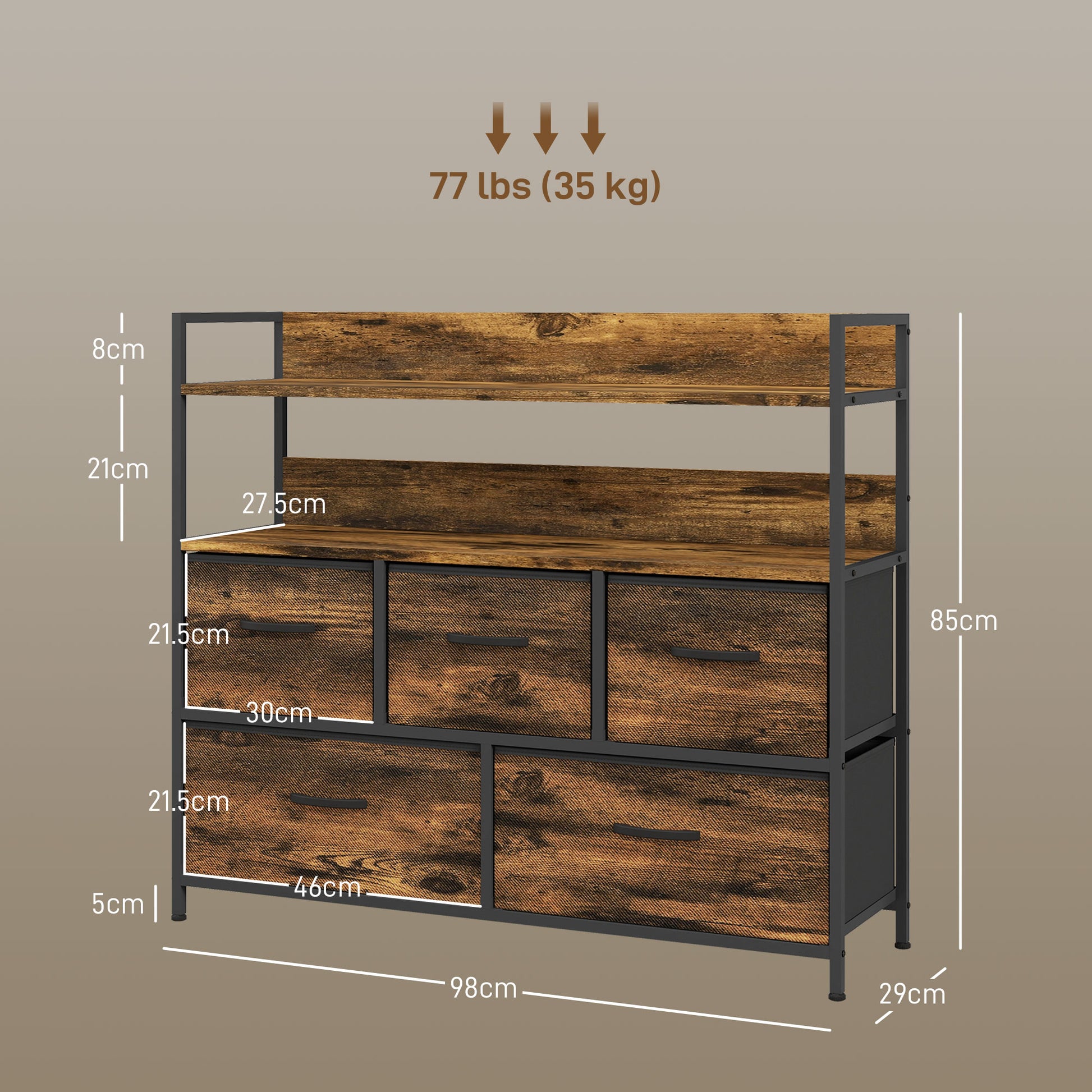 This fabric chest of drawers features five spacious drawers, providing ample room for ornaments, accessories, and more. The drawers can also be removed and folded for easy storage when not in use.