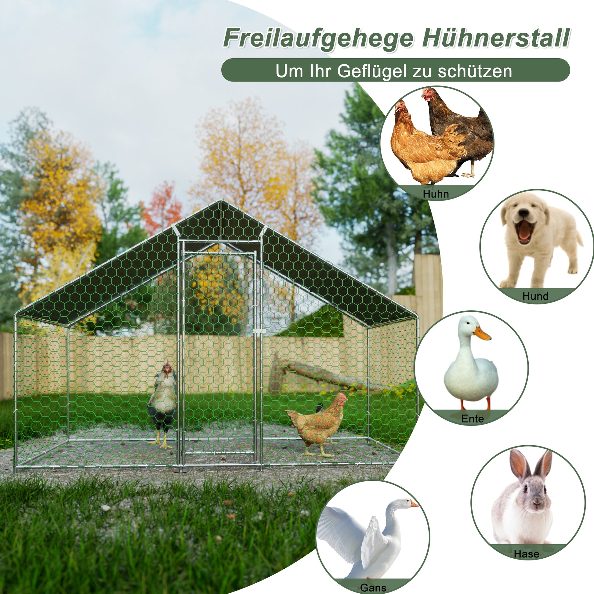 Chicken Coop/Run 3x1.5x2m Safety Lock Waterproof Enclosure, Metal