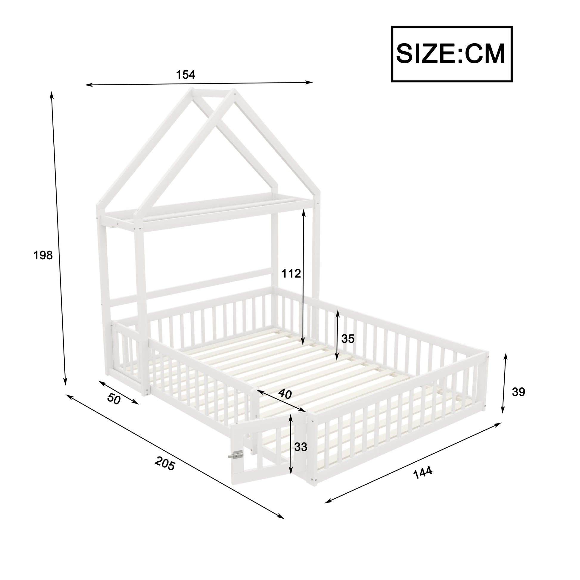 This children's bed features an elegant, simple, and generous pattern design that adds an artistic touch to your home. Small doors that open and close add interest to the bed and ensure a safer sleeping space. The roof design for storage and hanging clothes gives the bed versatility and a variety of combinations.