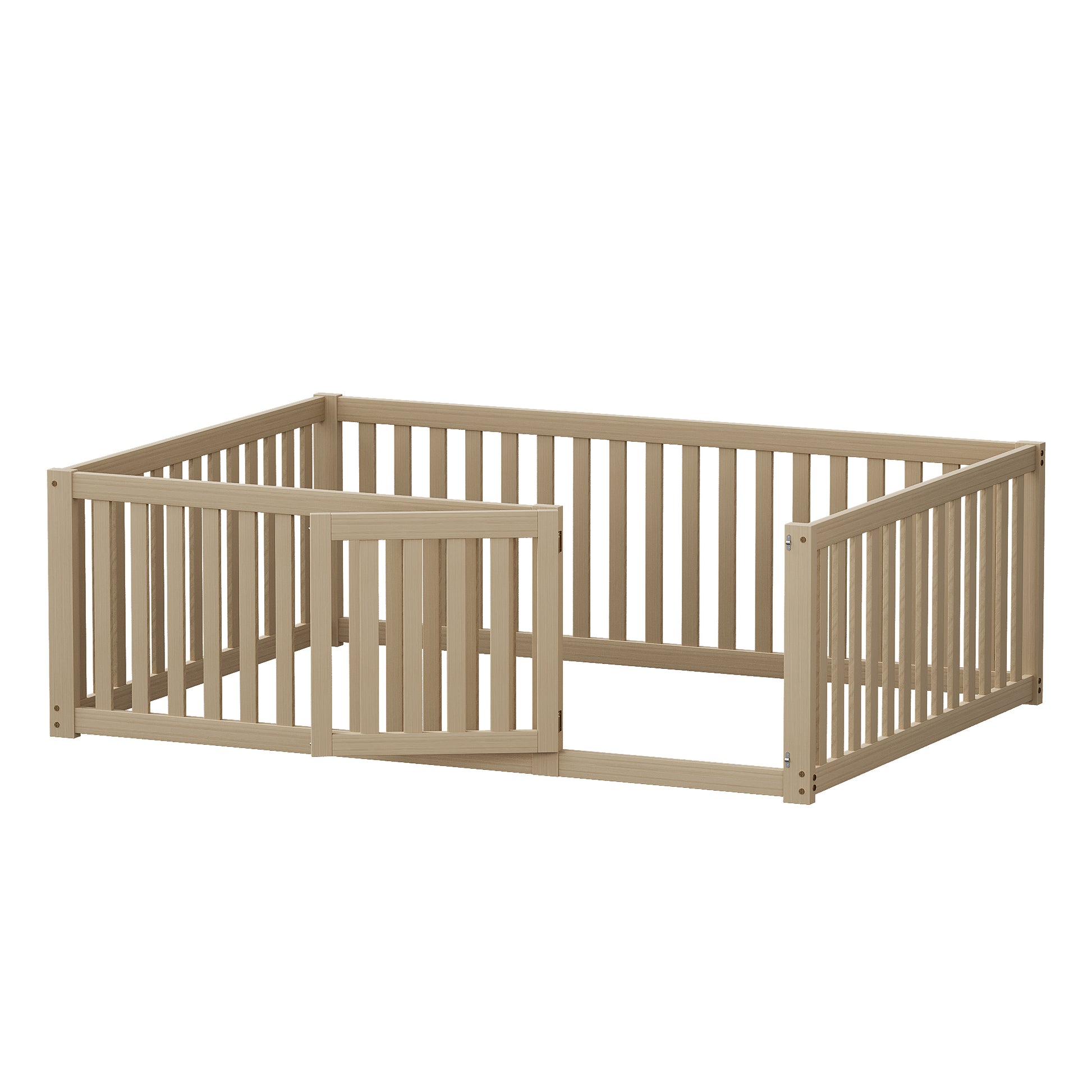 Children's bed 140x200 wooden floor bed frame with fence and door, wood color