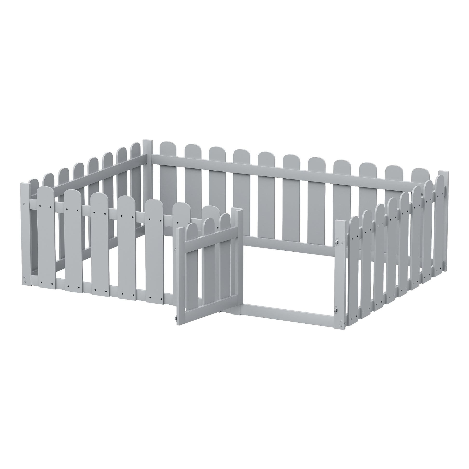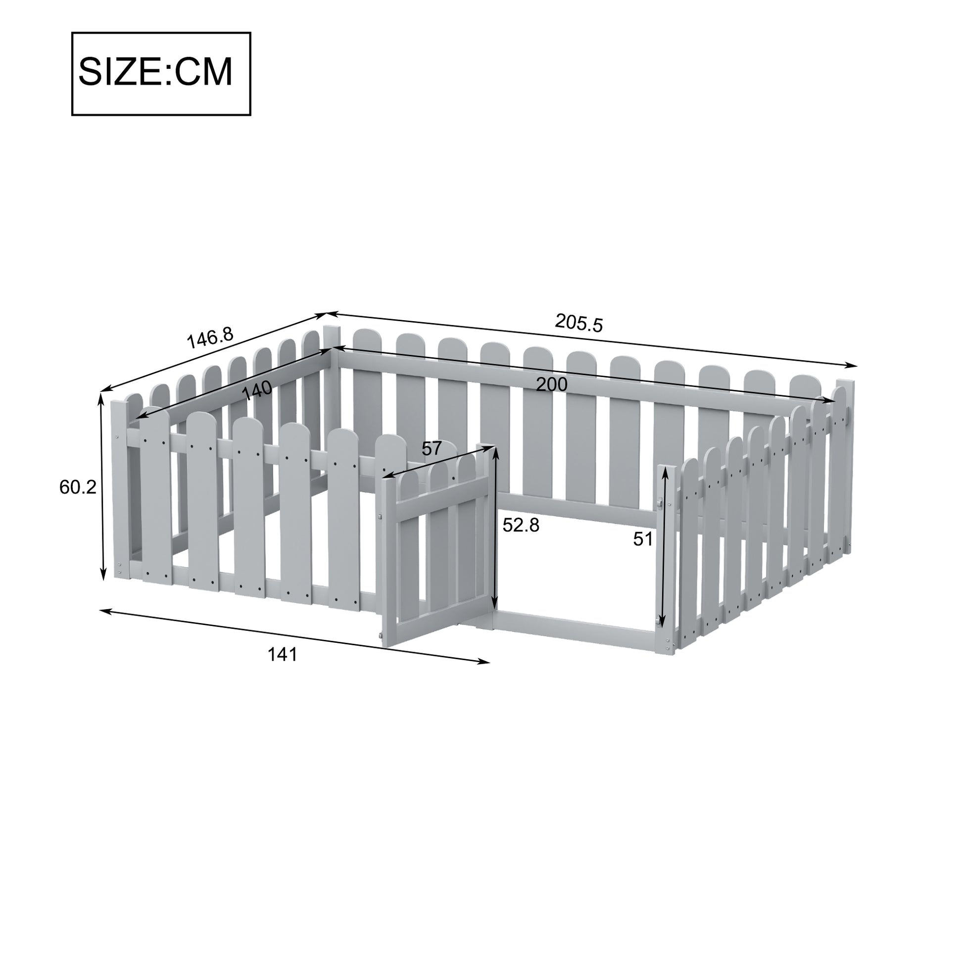 Children's bed 140x200cm wooden bed frame with border and door, grey