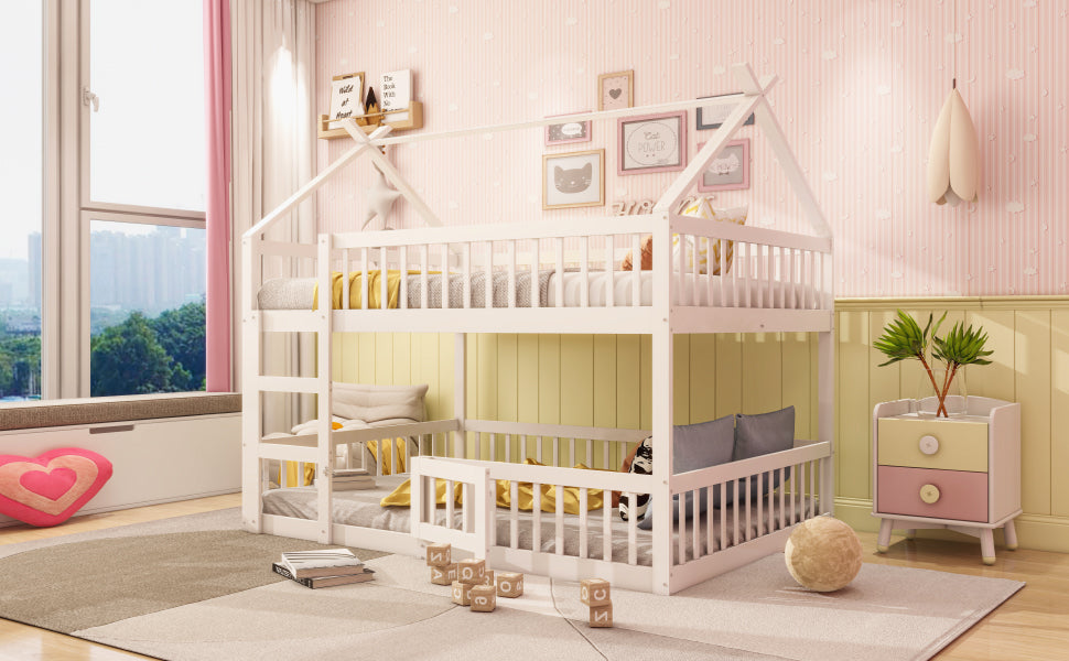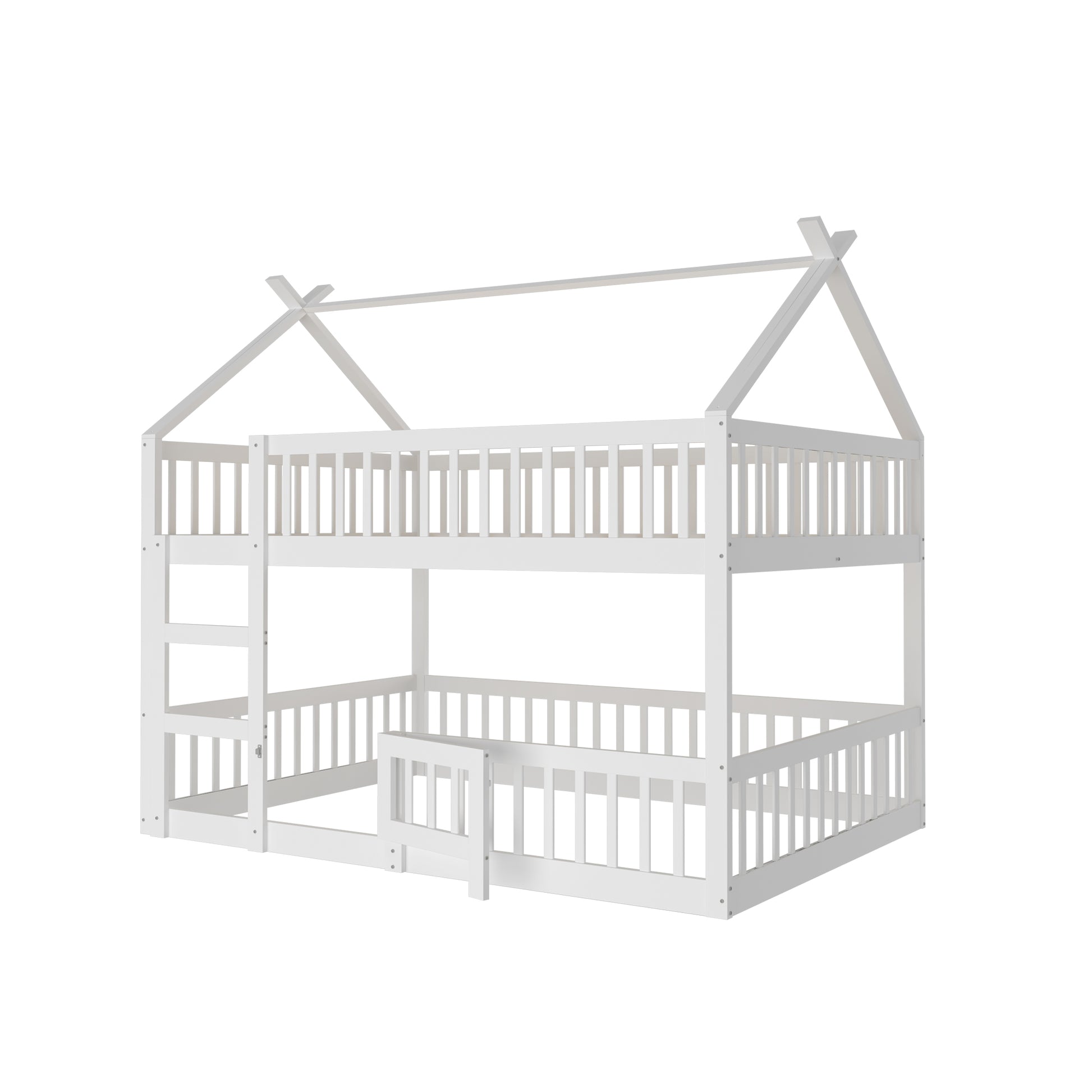 Both the upper and lower beds feature high-security rails to ensure a safe and comfortable sleeping environment. The integrated stairs allow easy and safe access to the upper loft bed and are very convenient for children. The double bed frame is made of solid wood for durability and stability, with a maximum load capacity of 120 kg for long-lasting use. The classic white color blends perfectly with any decor and adds a touch of elegance to the child's room. This bunk bed is ideal for families, offering maximum space and functionality, creating the ideal environment for sleeping, playing, and storage.