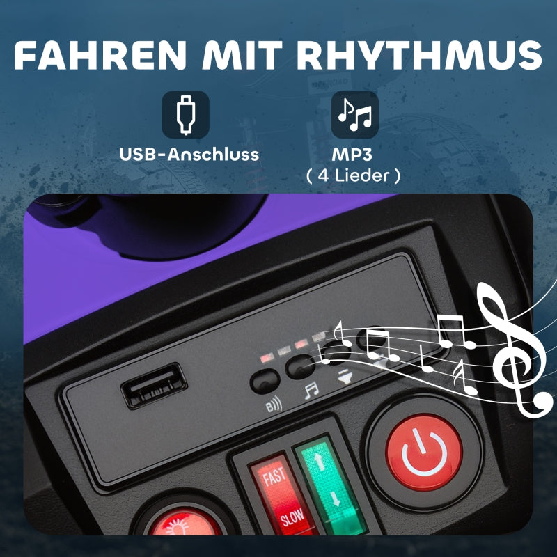 With its large plastic wheels and independent suspension, this quad bike masters a variety of surfaces such as grass, sand, and mud, inviting young explorers on exciting outdoor tours. For extra fun, it is equipped with a USB port, four pre-installed songs, and MP3 compatibility. The integrated front lights improve visibility in bad weather or twilight, thus increasing safety and enjoyment.