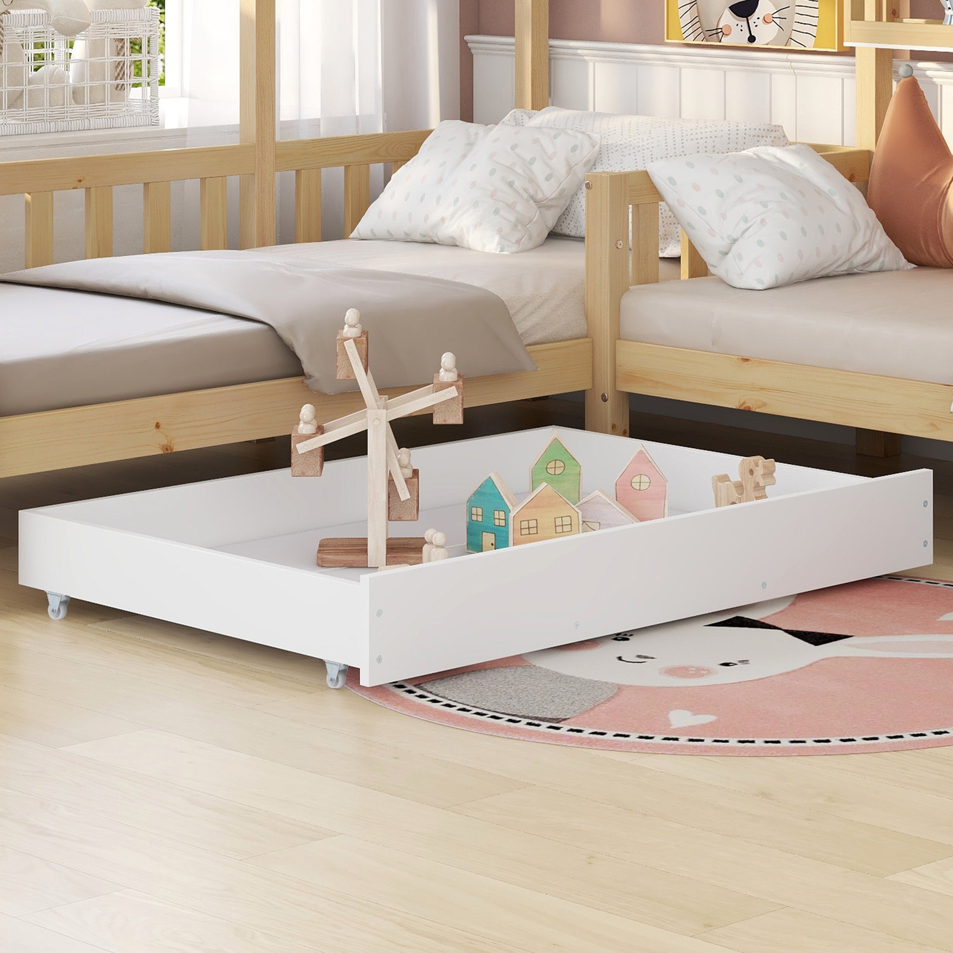 Children's House Bed with Drawers & Shelves, L-Shaped, Solid Wood