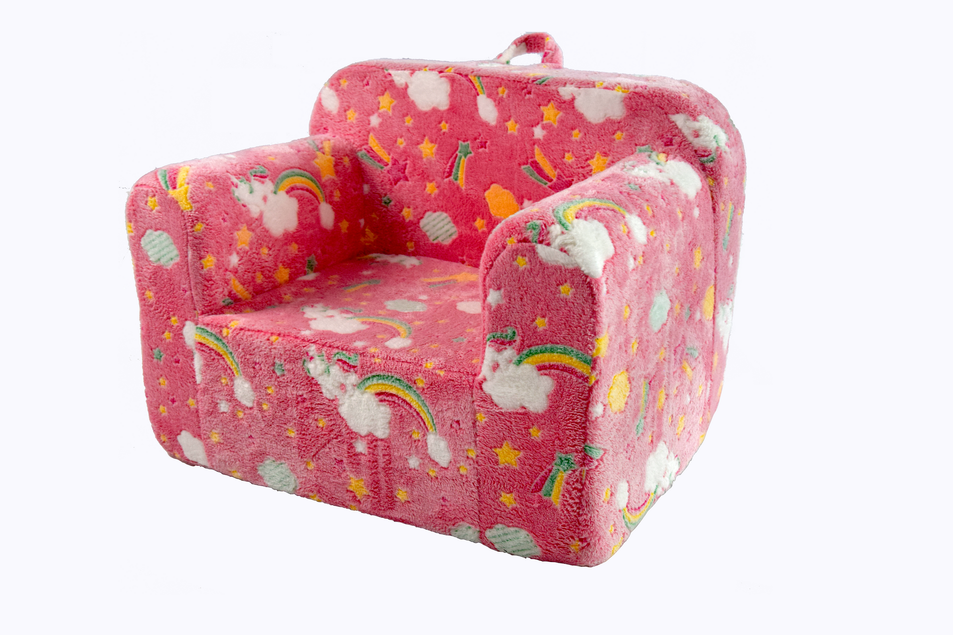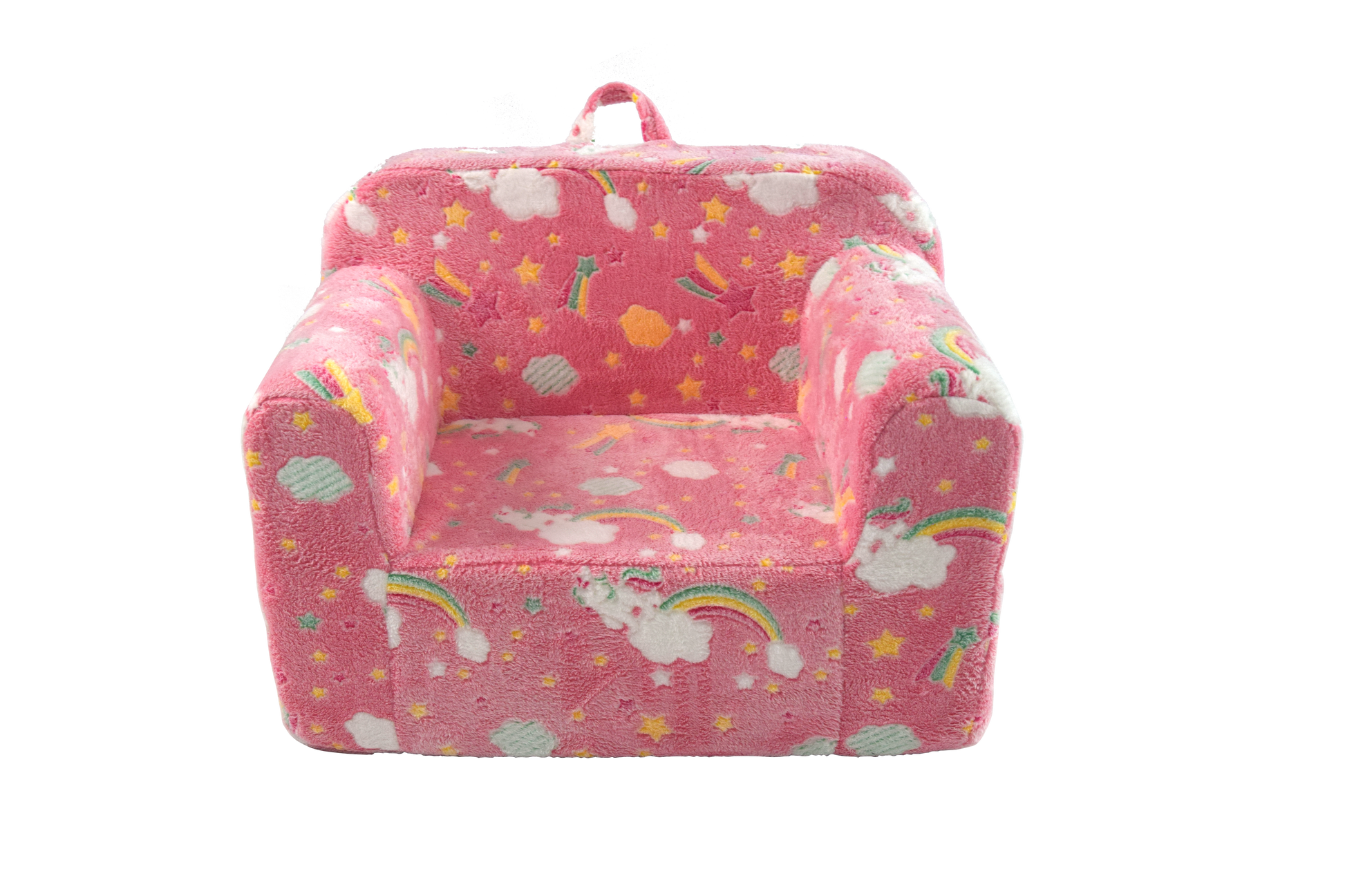 Children's Sofa/Chair with Carrying Handle & Side Pockets, Pink Rainbow