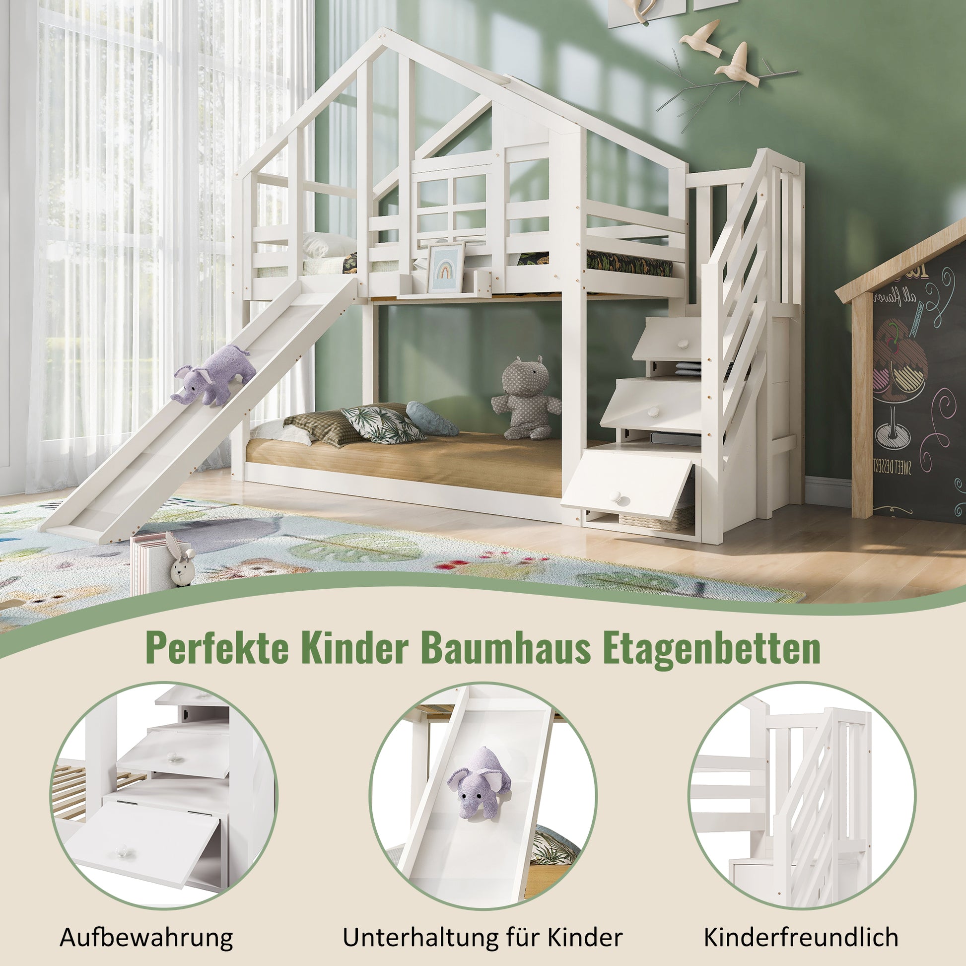 Children's Treehouse Bunk Bed 90x200cm Window Design Slide Fall Protection White