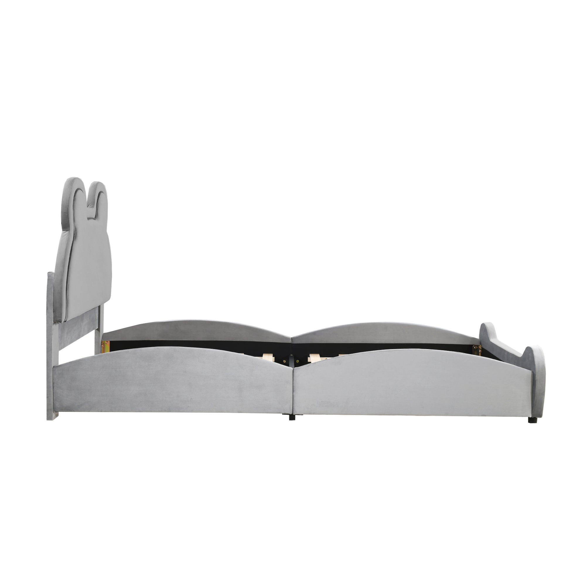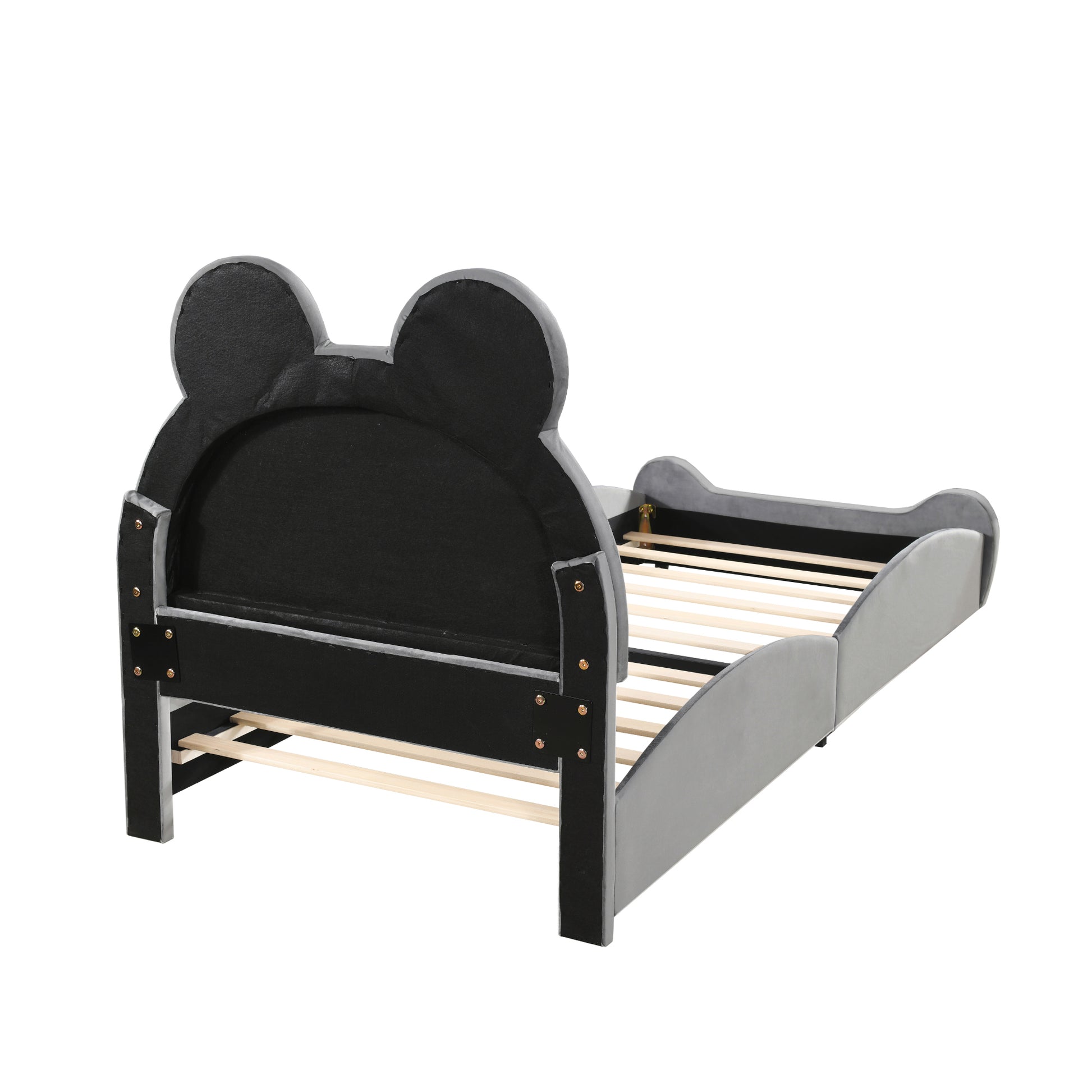 Children's Upholstered Bed, Bear-Shaped Single 90x200cm, Gray Velour