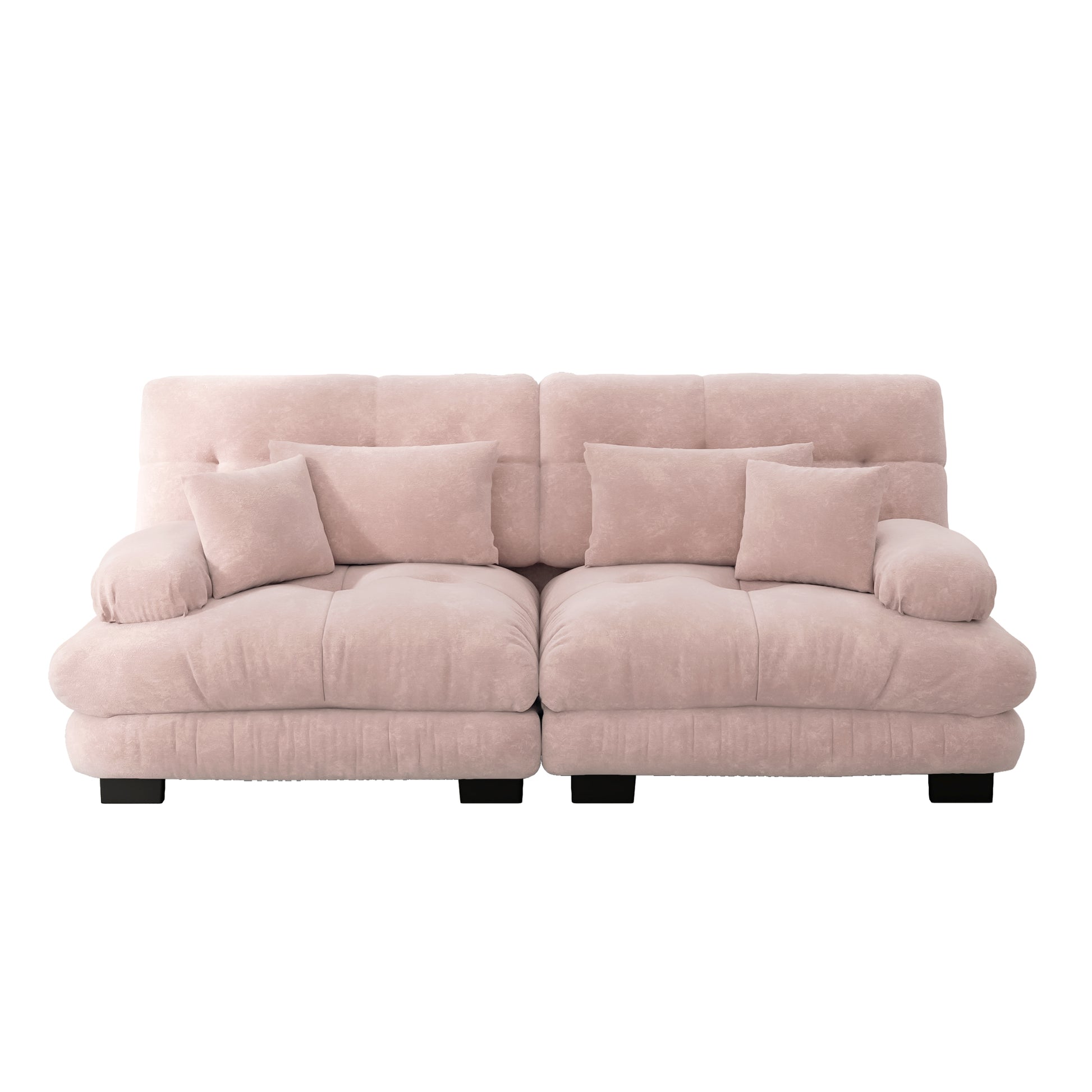 Like Sitting on a Cloud: Cloud-shaped seat cushions with no feathers or wood inside offer excellent support and elasticity for your body. The deep seat offers additional support and comfort for the waist. Decorative pillows and lumbar cushions provide additional support. You can sit down and feel the sofa backrest adjust perfectly and supportively while enjoying unparalleled comfort. Whether watching TV, reading, or chatting with family, this sofa offers you the ultimate comfort experience.