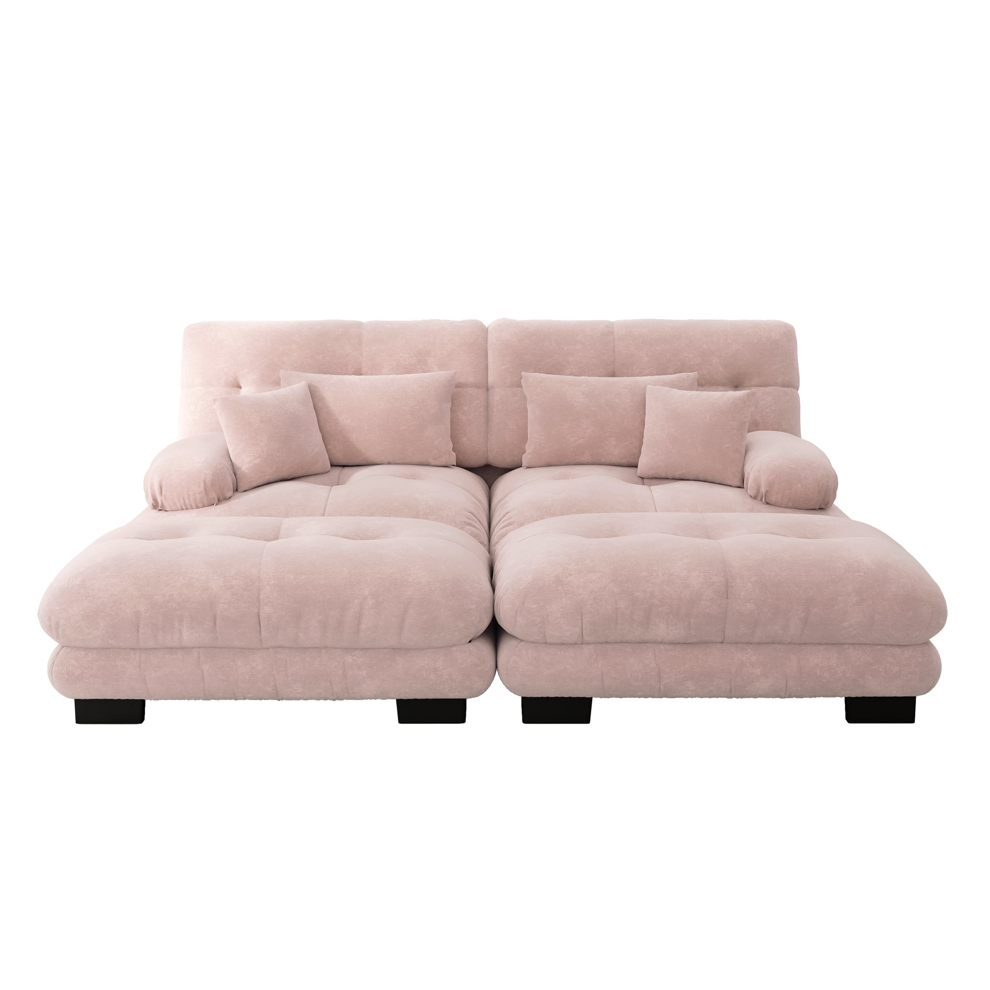 Cloud Corner Sofa, Double with Lumbar & Decorative Pillows, Ottomans, Chenille Pink