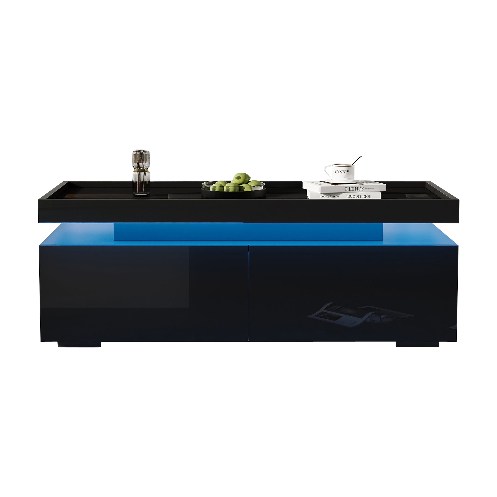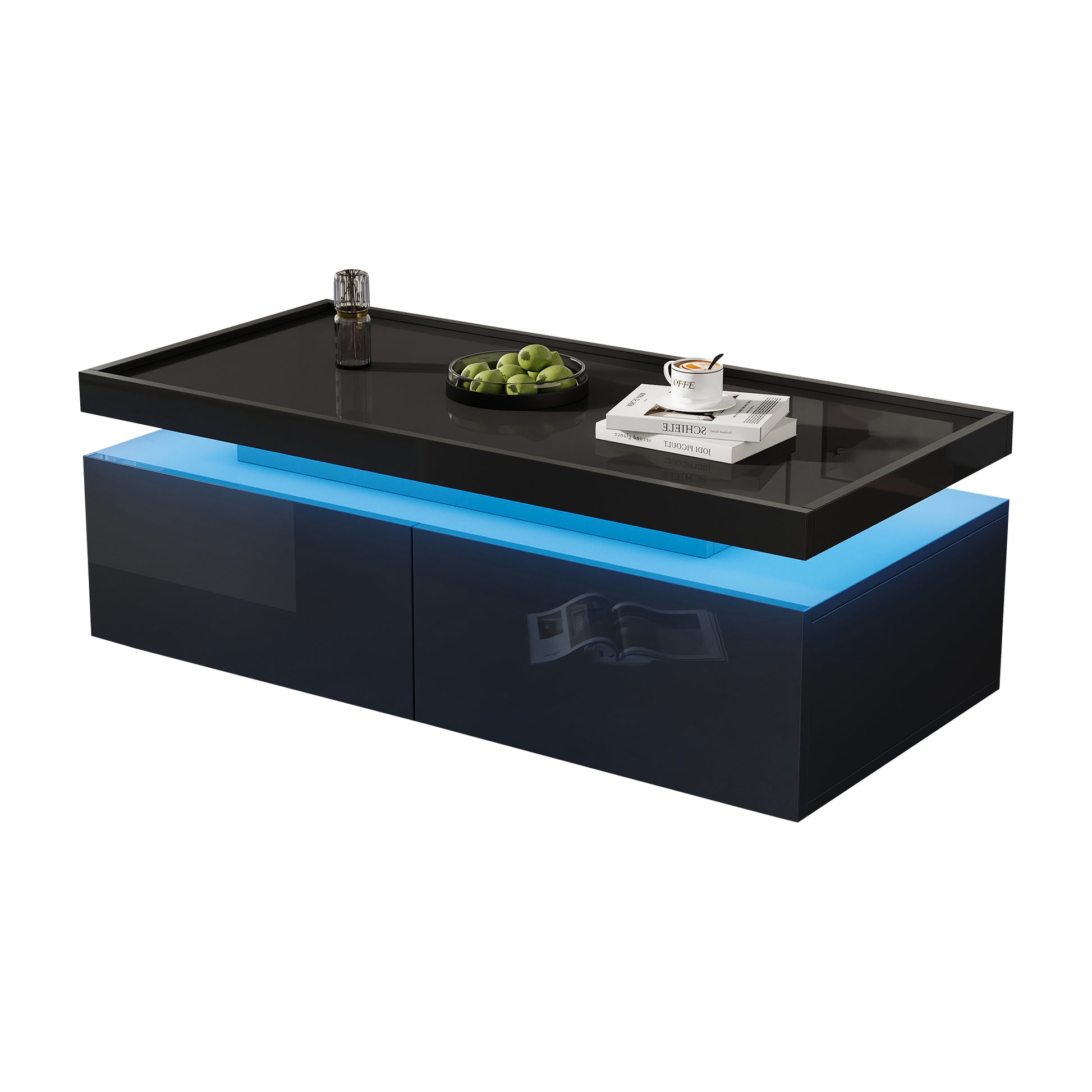Coffee Table 95x45x35cm, LED, 2 Drawers, High-Gloss, Black