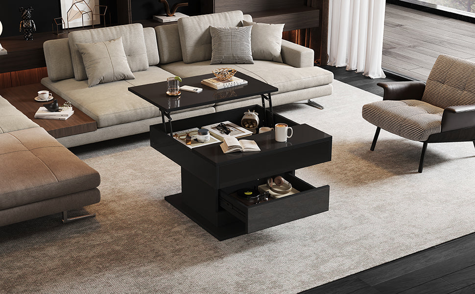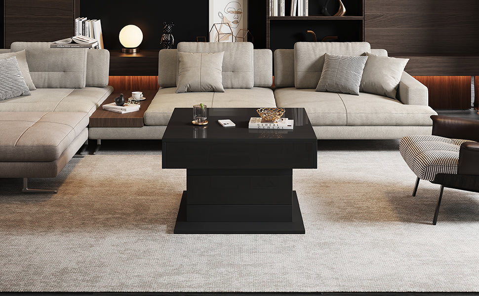 Coffee Table Geometric 360° Swivel Lift-Top 1 Drawer High-Gloss - Black