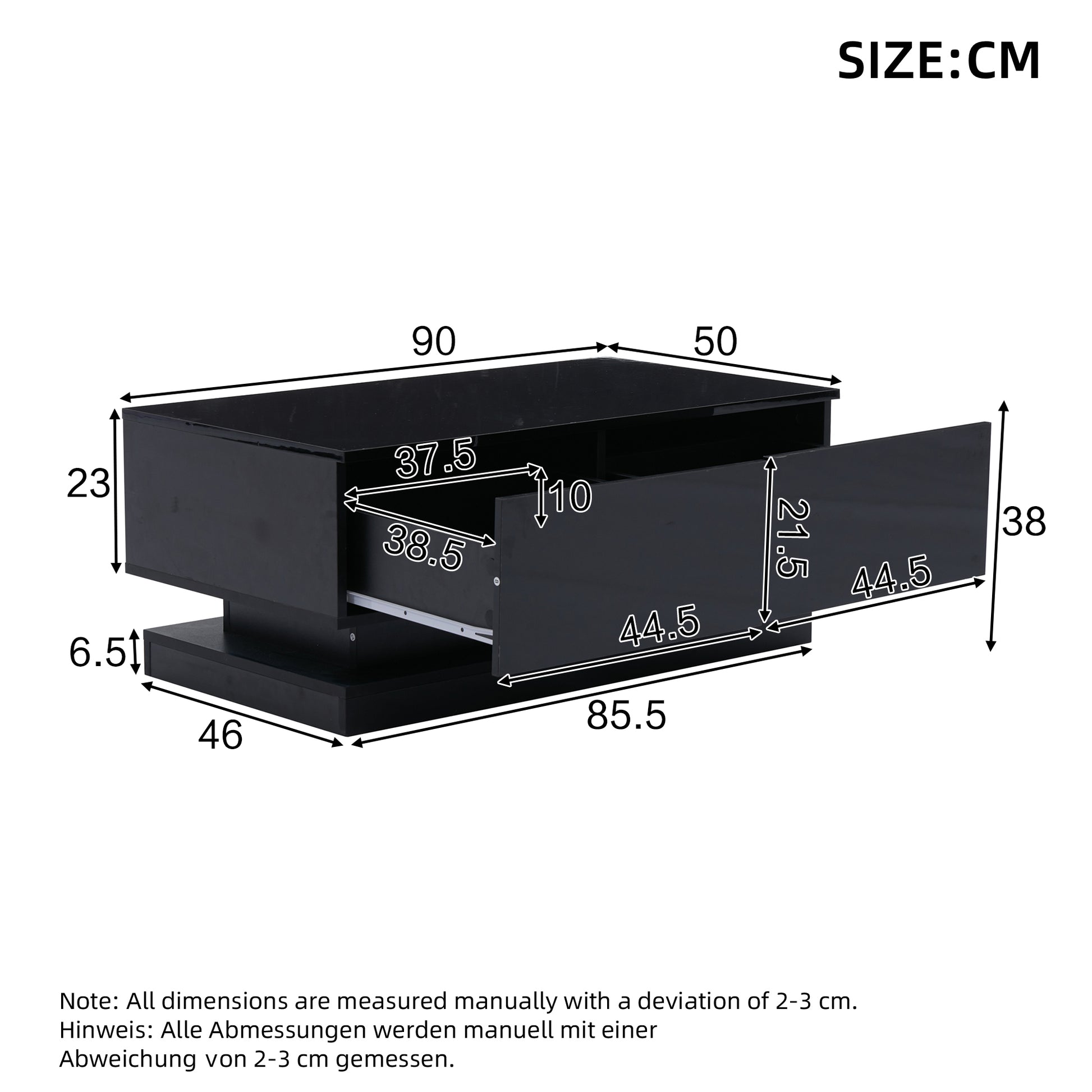 Coffee Table, High-Gloss with 2 Drawers & LED Lighting, Black