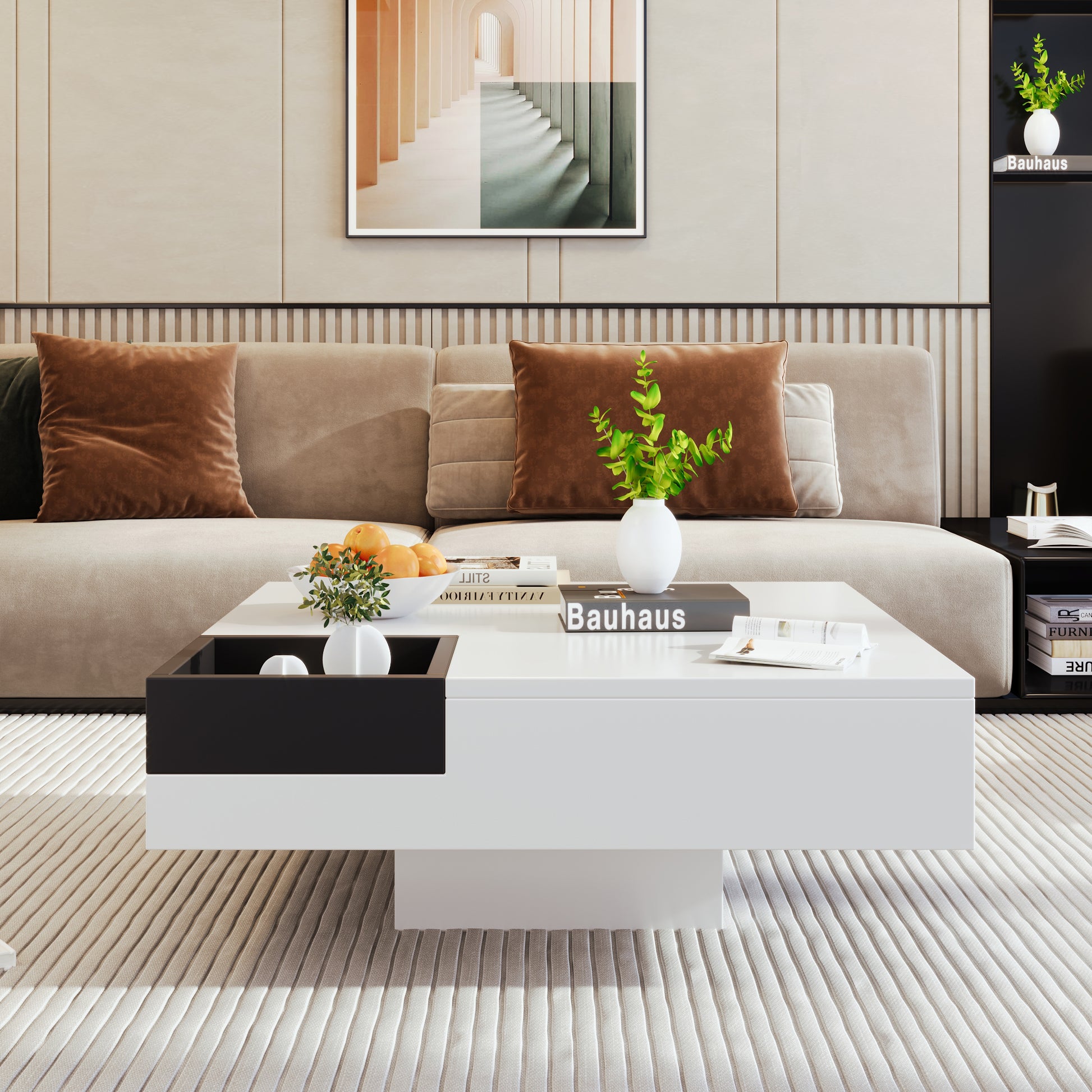 Coffee Table, High-Gloss with Removable Storage Box and LED Light Effect, White and Black