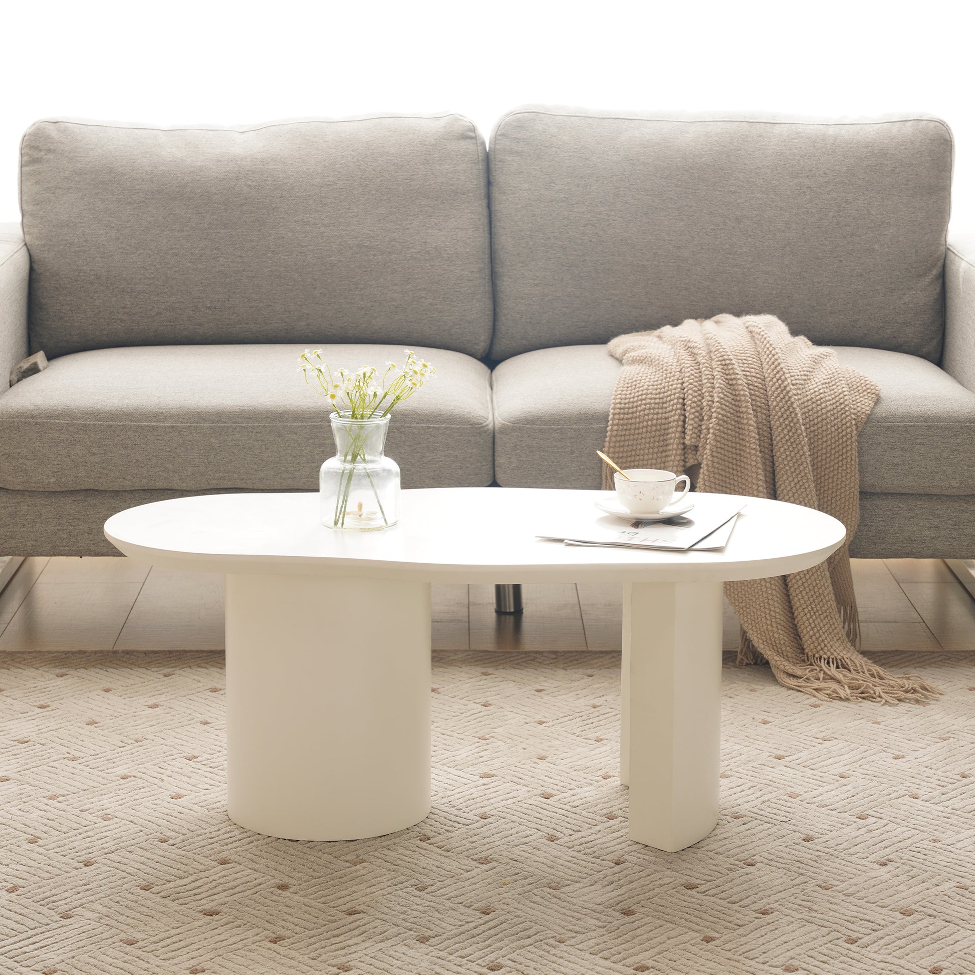 Our 100 cm long white irregular coffee table sets a new standard for style and functionality with its unique design and high-quality craftsmanship. Made from high-quality MDF, this coffee table's brilliant white color will brighten up any room. The entire surface of the coffee table has been carefully lacquered to create a smooth, silky finish that's essentially free of rough textures or imperfections and leaves no white marks when you run your hand over it. The soft and delicate feel makes this table a delight for the senses. The table is also easy to clean and does not stain, so it can be wiped with a damp cloth.