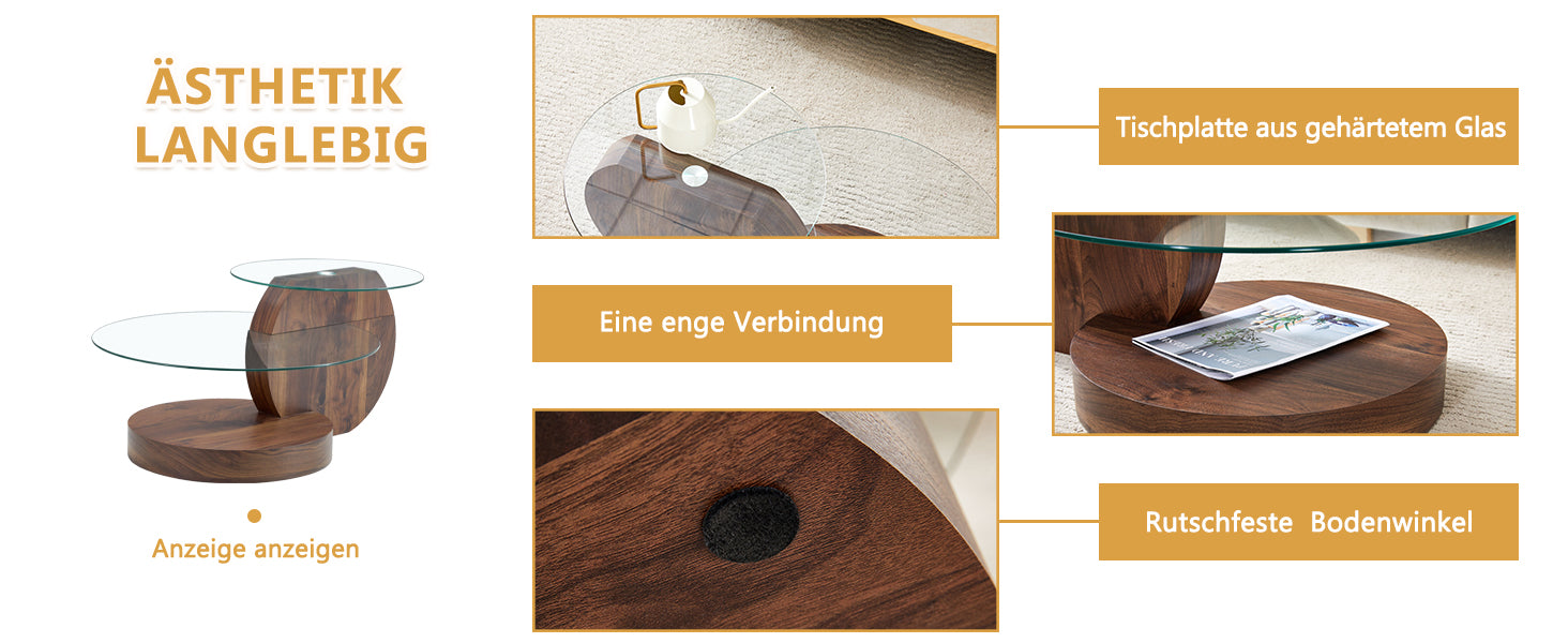 Stylish Design: This coffee table combines a modern, minimalist style with a tempered glass tabletop and walnut-colored wood-textured stickers to add a touch of elegance and contemporary style to your home.