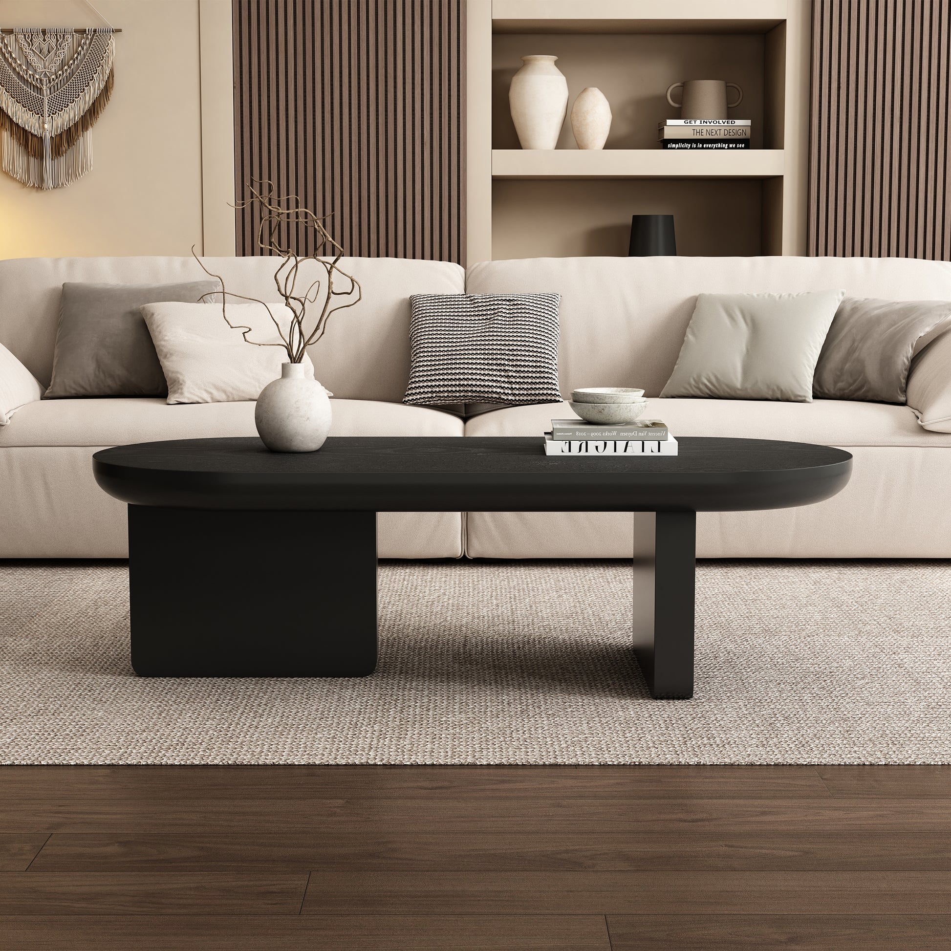 Coffee Table Oval Modern Minimalist Spray-Painted MDF Black