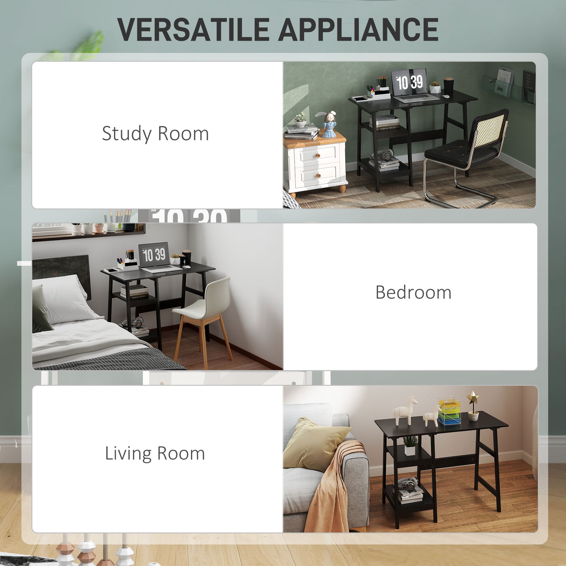 This compact computer desk features side shelves that are handy for keeping your work essentials organized, such as papers, folders, and stationery. It is a great space-saver for homes, study rooms, bedrooms, and offices.