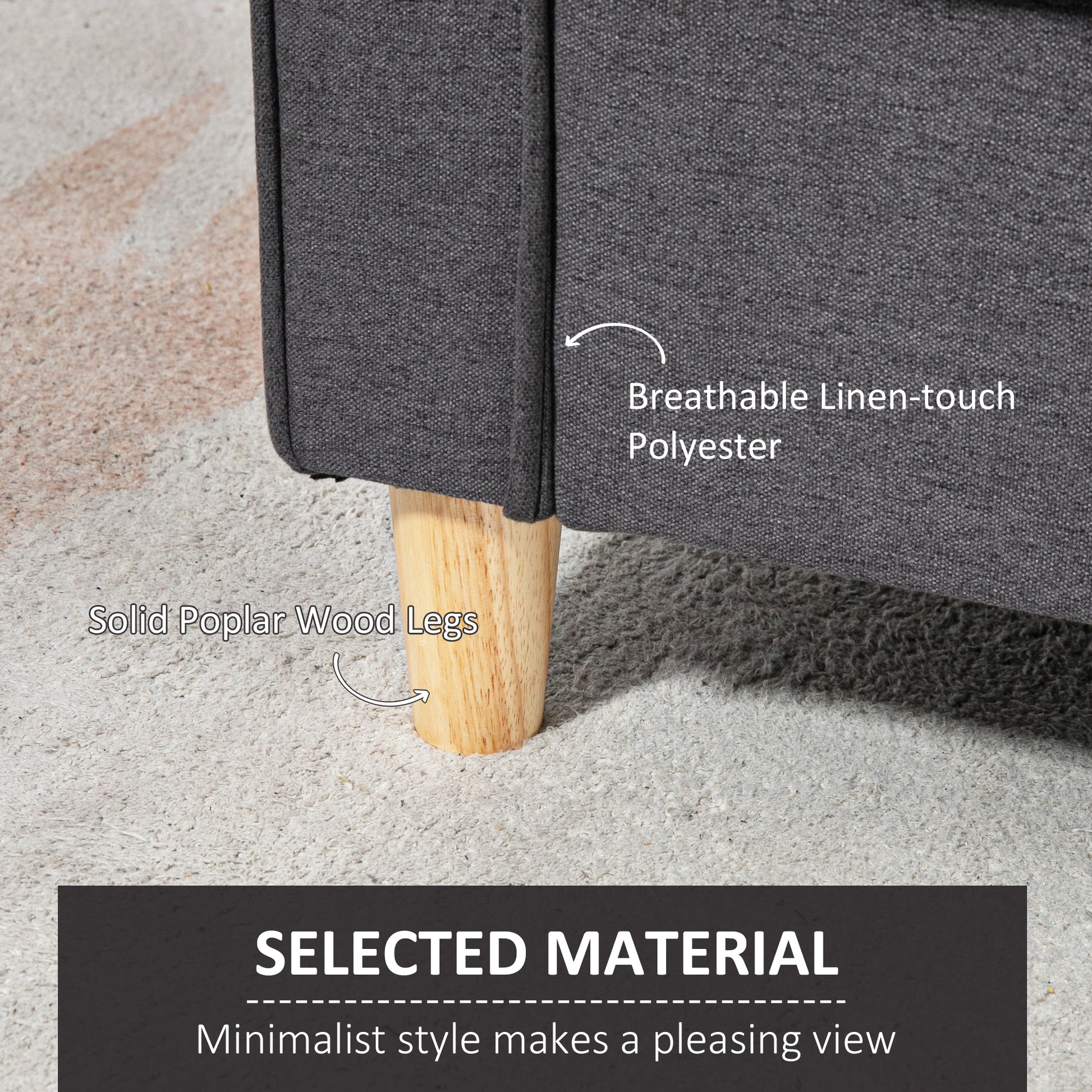 Reliable wooden base: Built with a durable frame and solid poplar wood legs, this small sofa offers reliable support. Anti-slip pads on each leg gently protect your floors.
