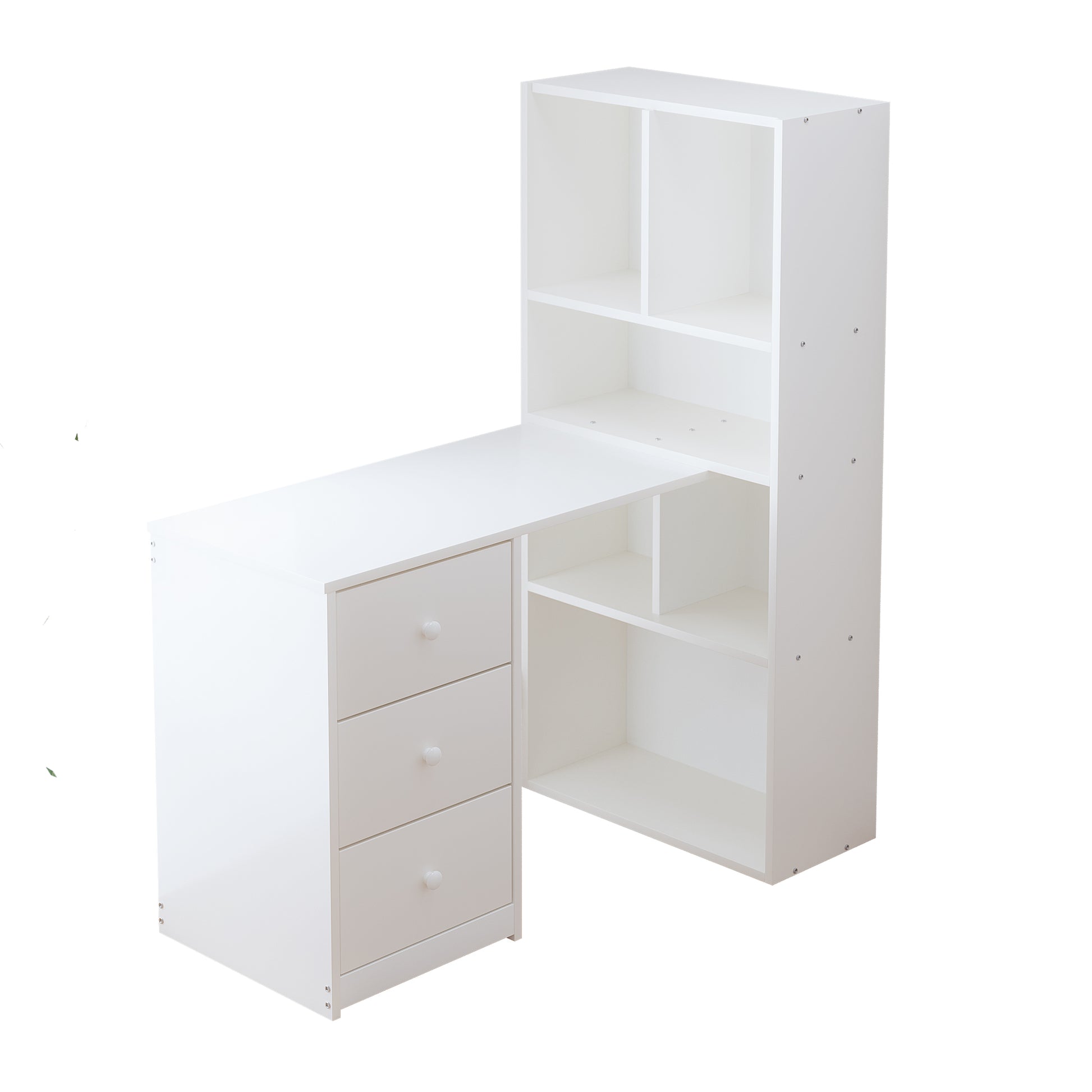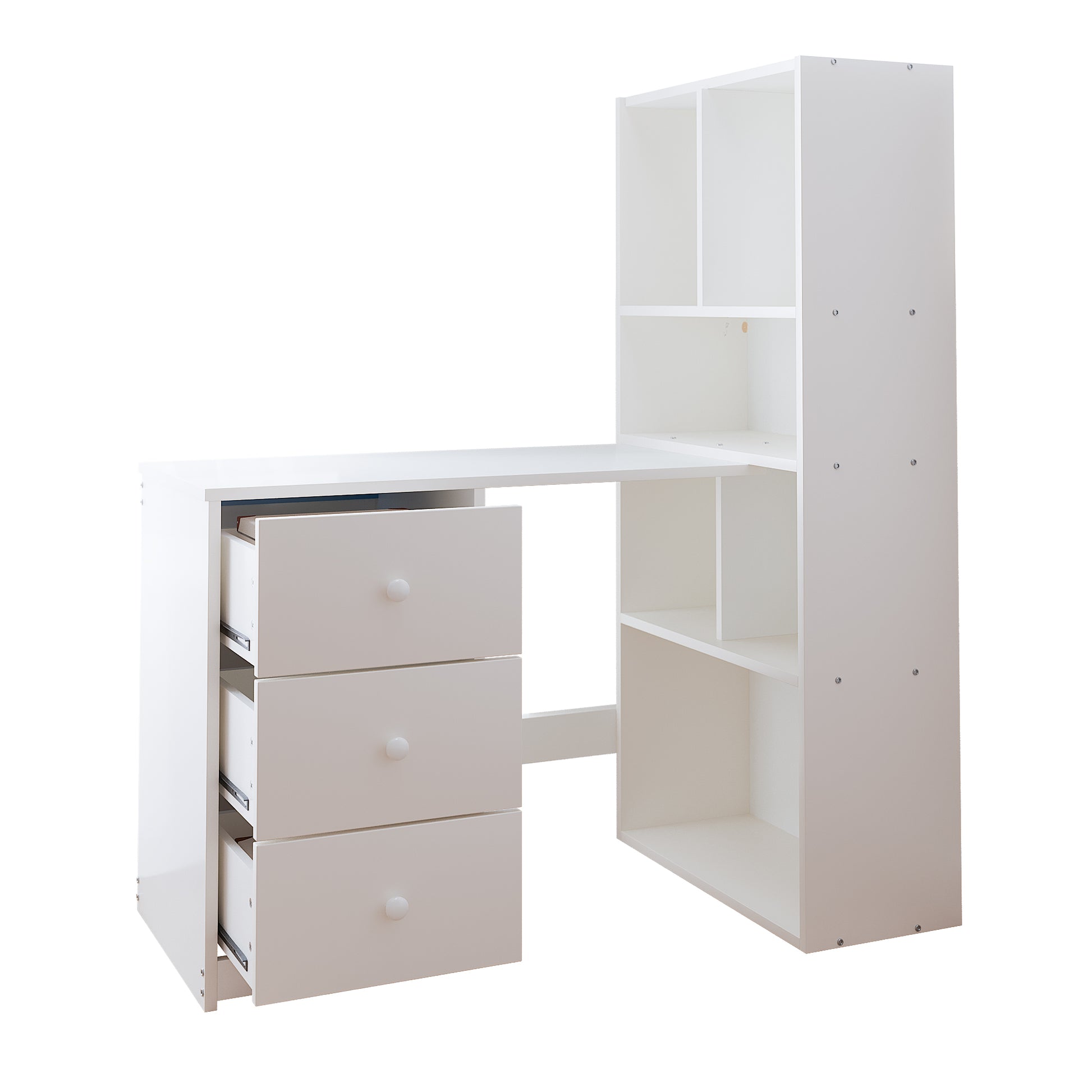 Corner Desk with Bookshelf, 4 Storage and 3 Drawers, White