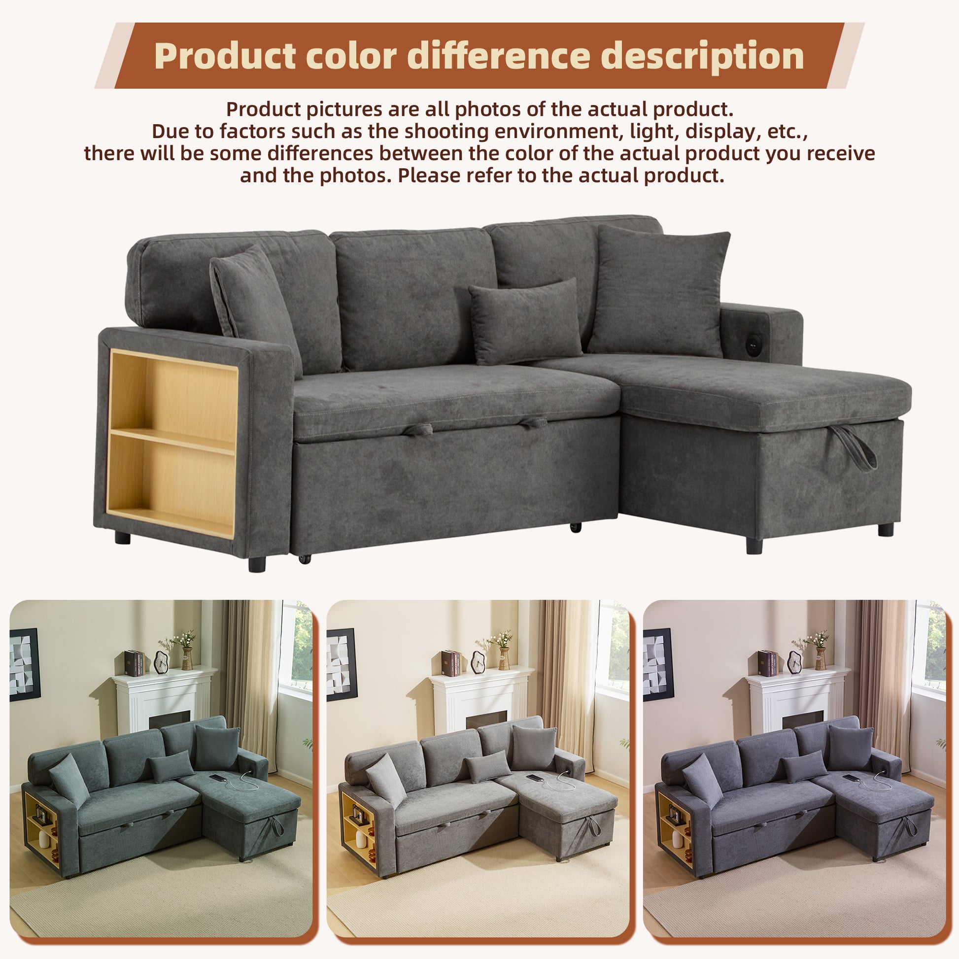 Upgrade your living space with this versatile dark gray L-shaped corner sofa bed. Designed for style, comfort, and functionality, it features an extendable bed, built-in storage, and integrated shelving. Ideal for modern homes, it provides seating for up to four people while offering flexible solutions for small spaces. The soft Oxford fabric and included cushions ensure a cozy and elegant experience, whether lounging, entertaining, or hosting overnight guests.