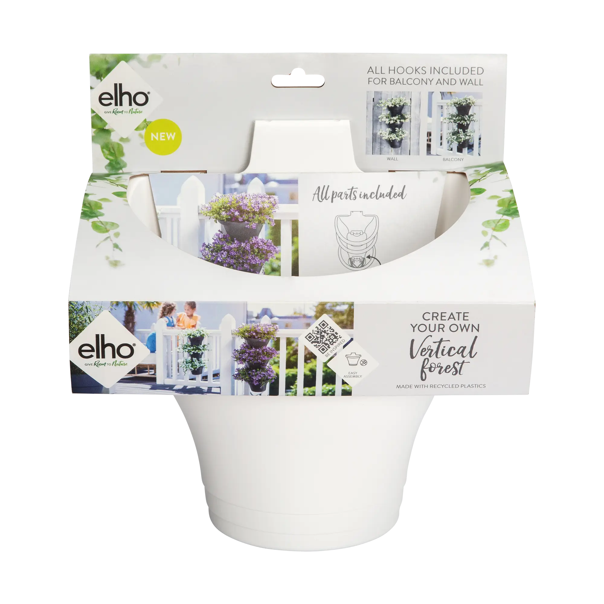 If your terrace or balcony isn't big enough, you just go up. This vertical flowerpot from elho makes it possible. Start gardening vertically and combine every plant and flower possible on your balcony, terrace or wall. The set with 3 pots includes both balcony hooks and a wall hook, so you can place the Vertical Forest everywhere. The planter has a convenient drainage hole, making sure that your plants never get too wet, that they are protected from root rot and that their roots are perfectly ventilated. For you to enjoy them even longer!