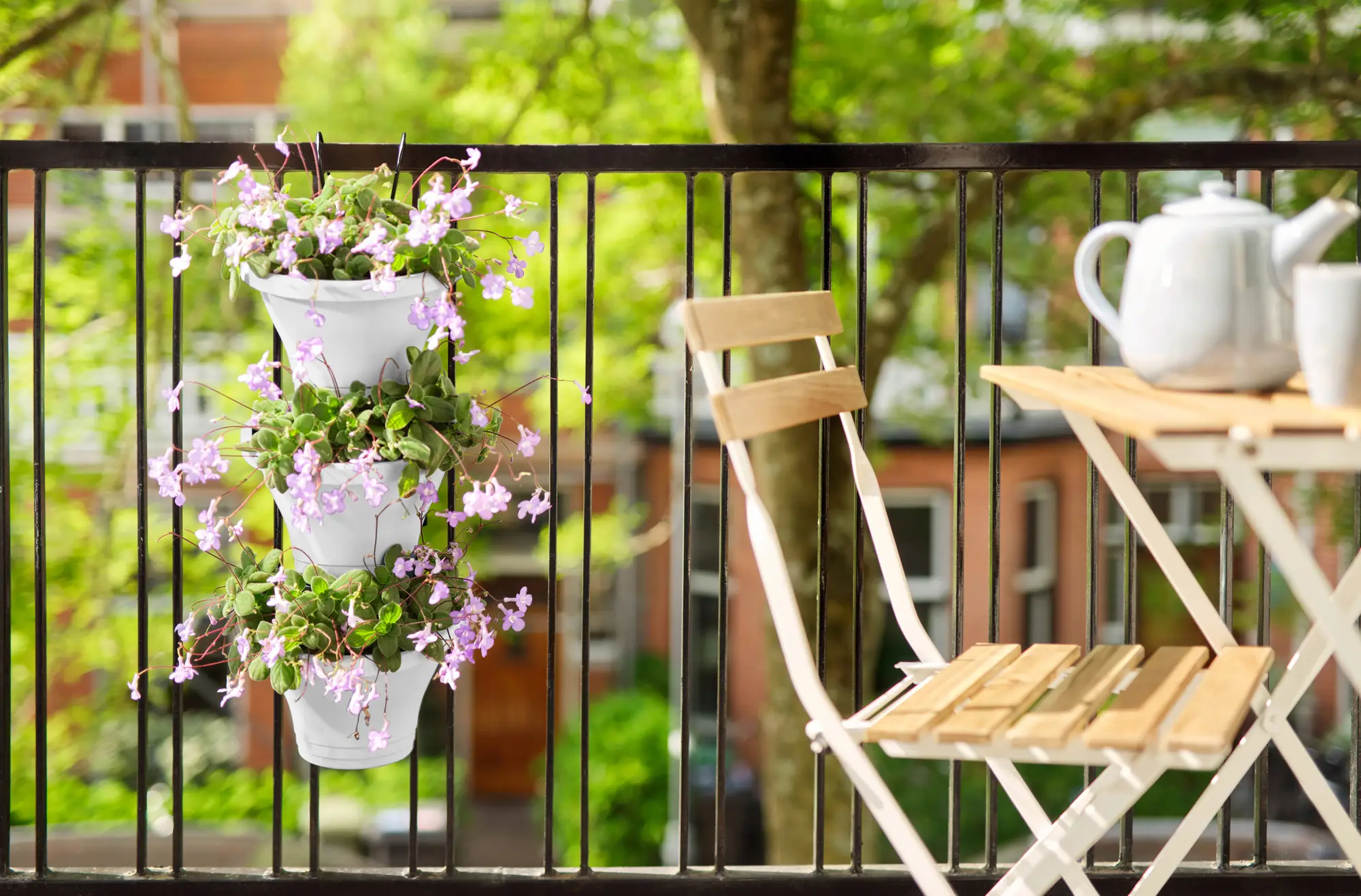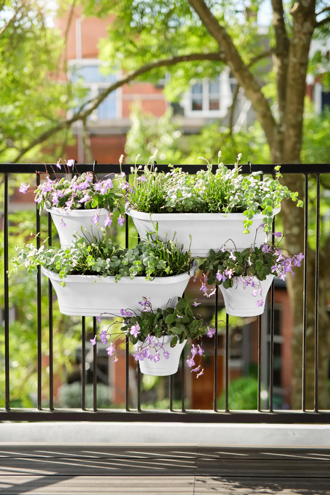 - Place the vertical forest planters on a balcony (railing up to 6 cm wide) or on the wall: both hooks for mounting are included