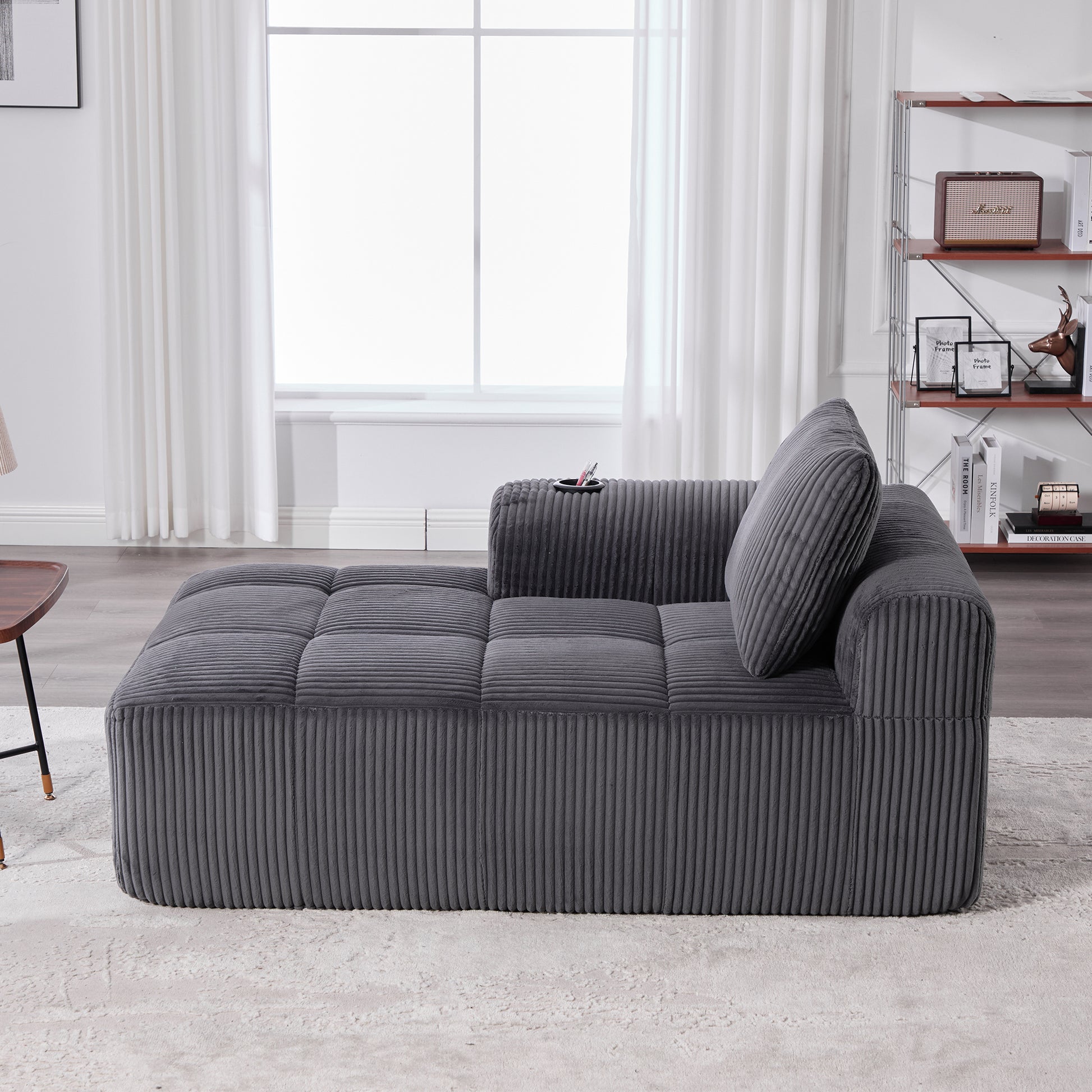 The sofa is equipped with large side pockets and integrated cup holders. The side pockets offer ample space for the TV remote, books, magazines, cell phones, or tablets—everything within easy reach, without needing extra storage space. The cup holders prevent accidental spills, ideal for movie nights, relaxation time, or entertaining guests.