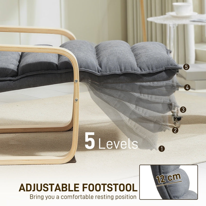 Curved Wooden Accent Chair with Adjustable Footrest, Dark Grey
