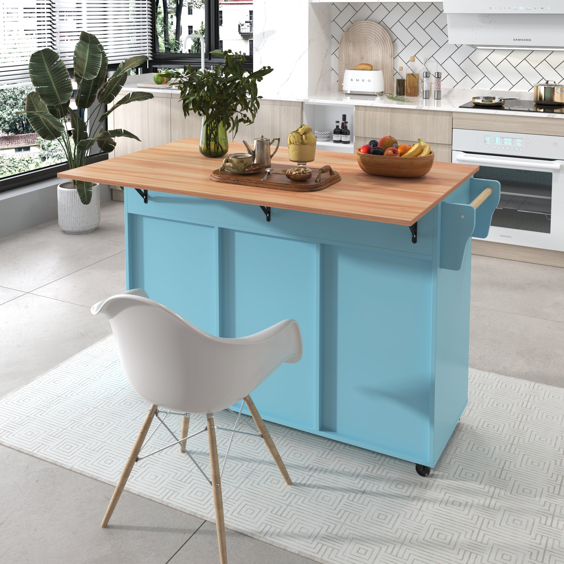 Dining Cart Sideboard Extendable Folding Worktop Storage Wheels - Blue/Wood Grain