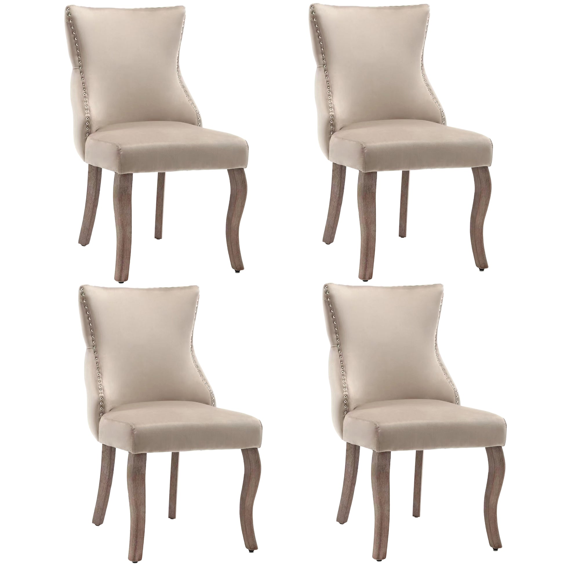 Dining Chair (set of 4), Upholstered with Button Quilting & Nailhead Trim, Velvet Beige