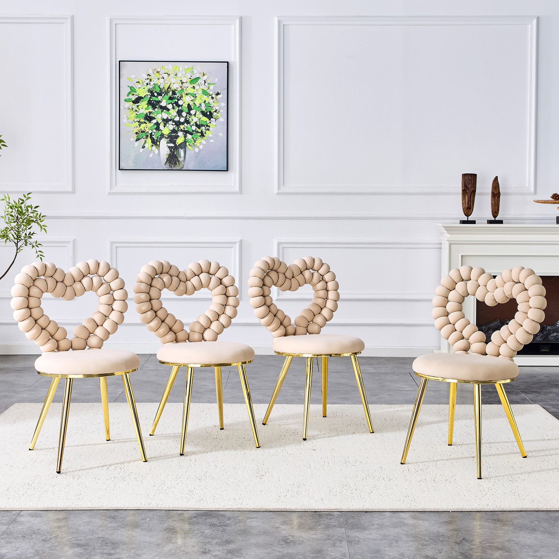 Dining Chairs (Set of 2), Heart-Shaped Cutout Backrest, Gold-Plated Legs, Light Beige Velvet