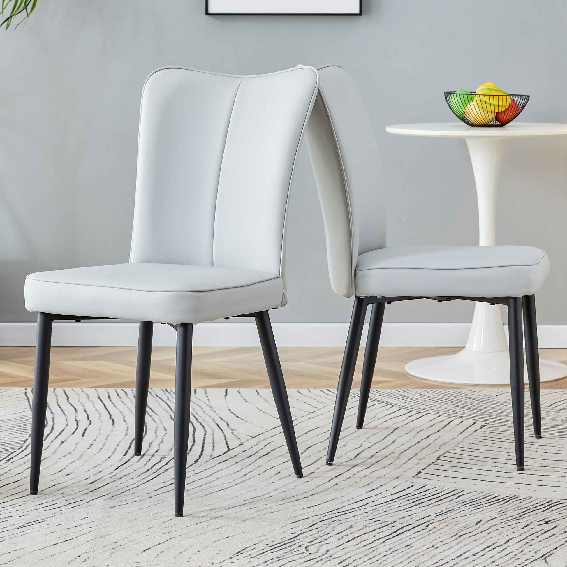 Dining Chairs, Set of 2 Modern 89cm High, Black Metal Legs, Light Grey PU