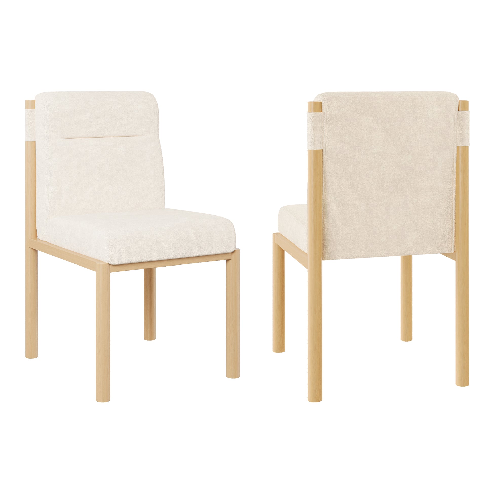 Dining Chairs, Set of 2 Modern Oak Effect Frame, Sherpa Fabric Beige