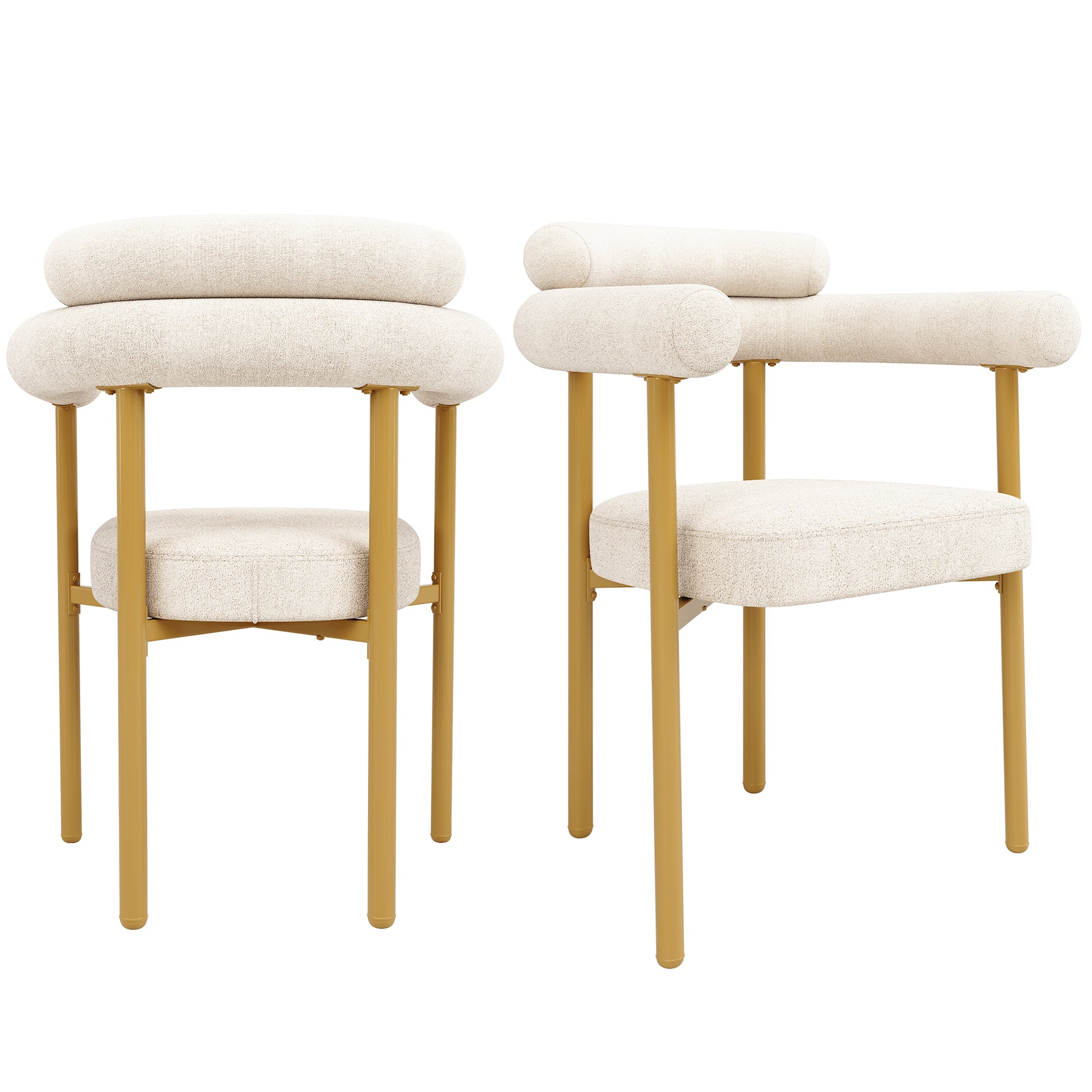 Dining Chairs (Set of 4) Modern Comfortable Ring Seats, Beige Suede/Gold Legs