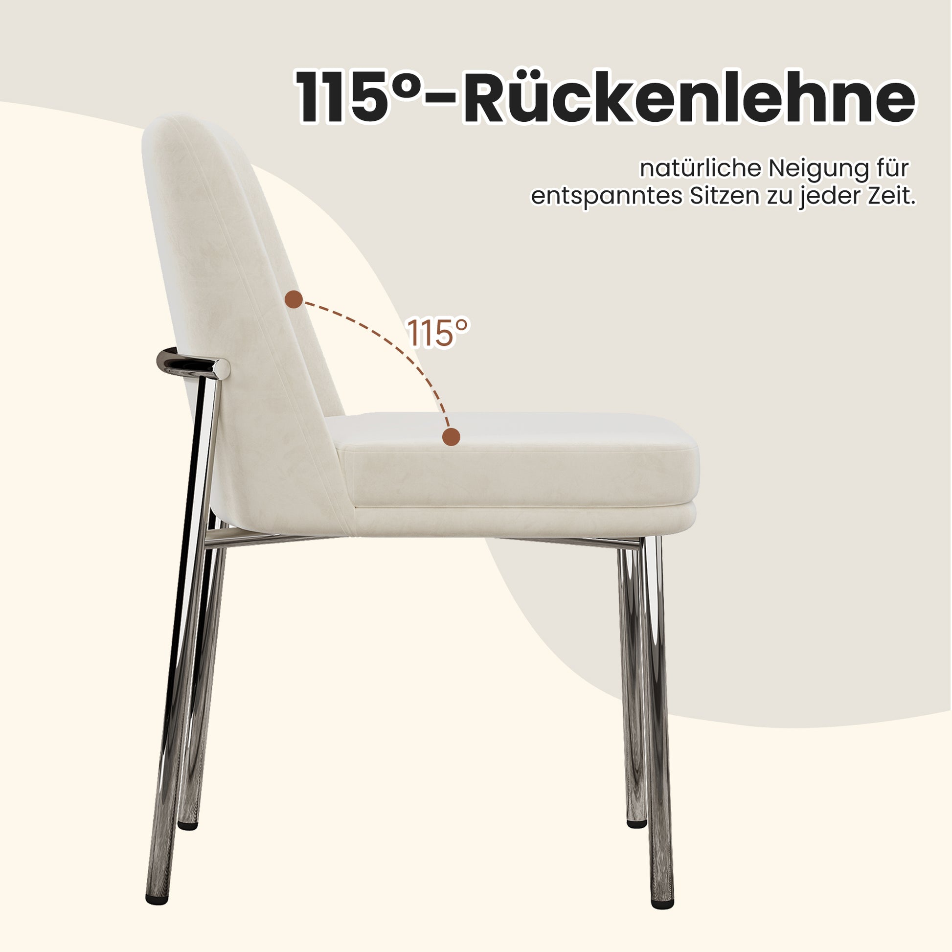 Dining Chairs Set of 6 Thickened Cushion Metal Legs Modern Style - Velvet Beige