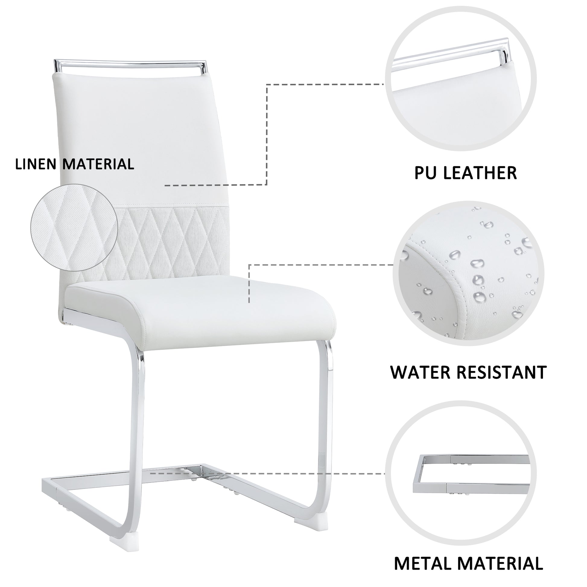 Dining Chairs (Set of 6), Upholstered High Back Side, White