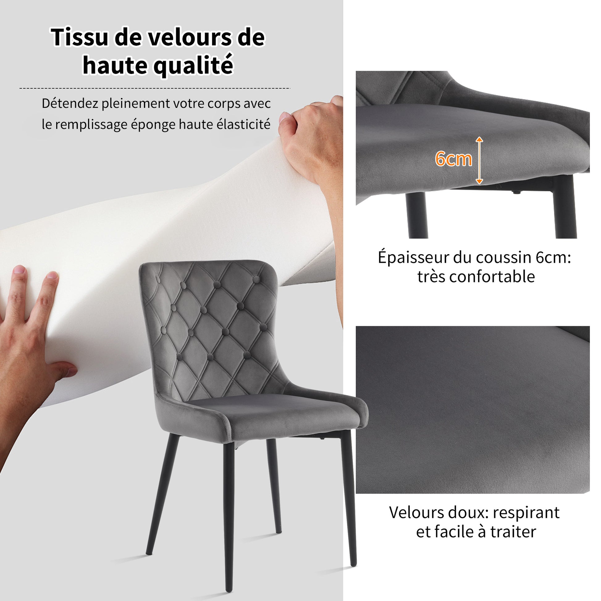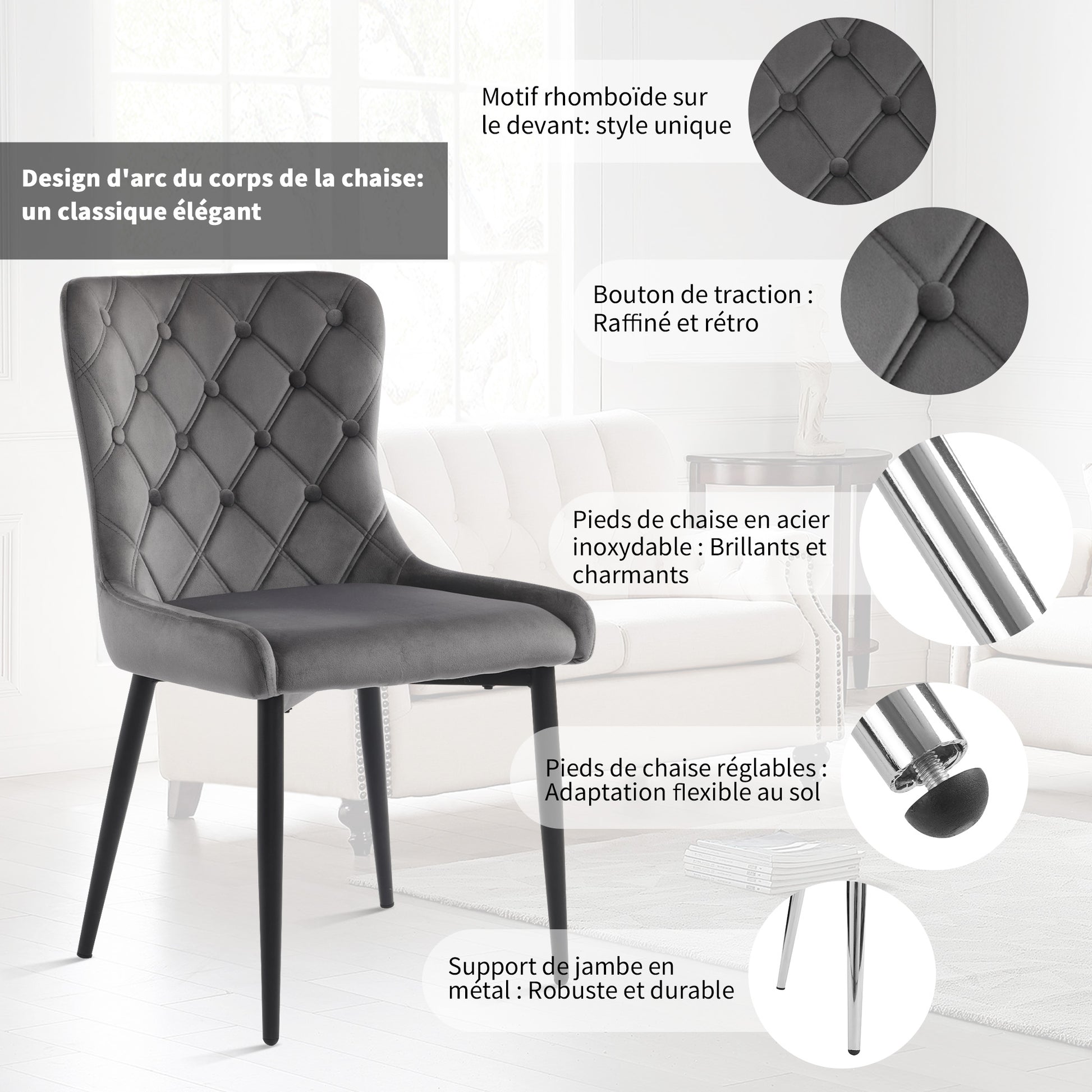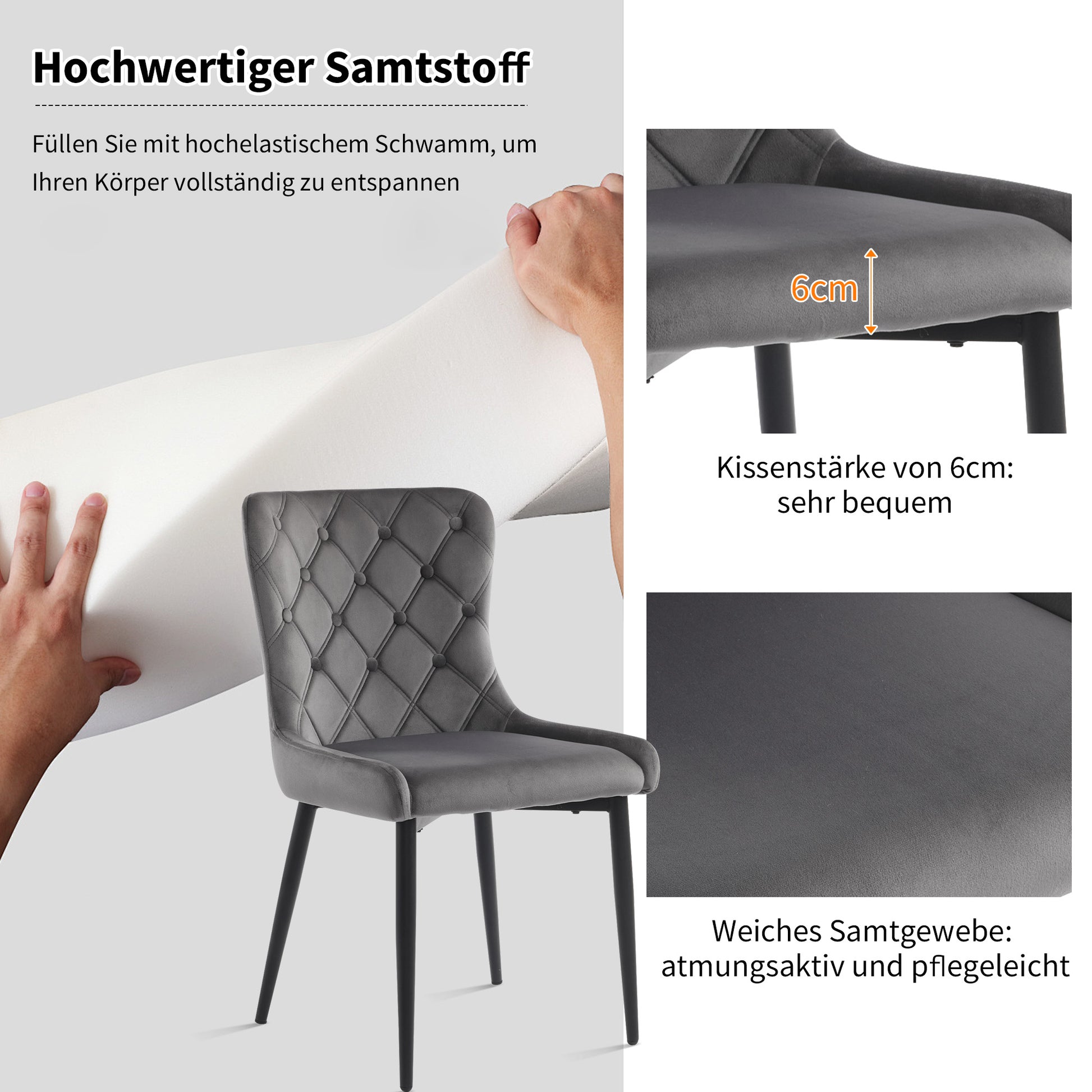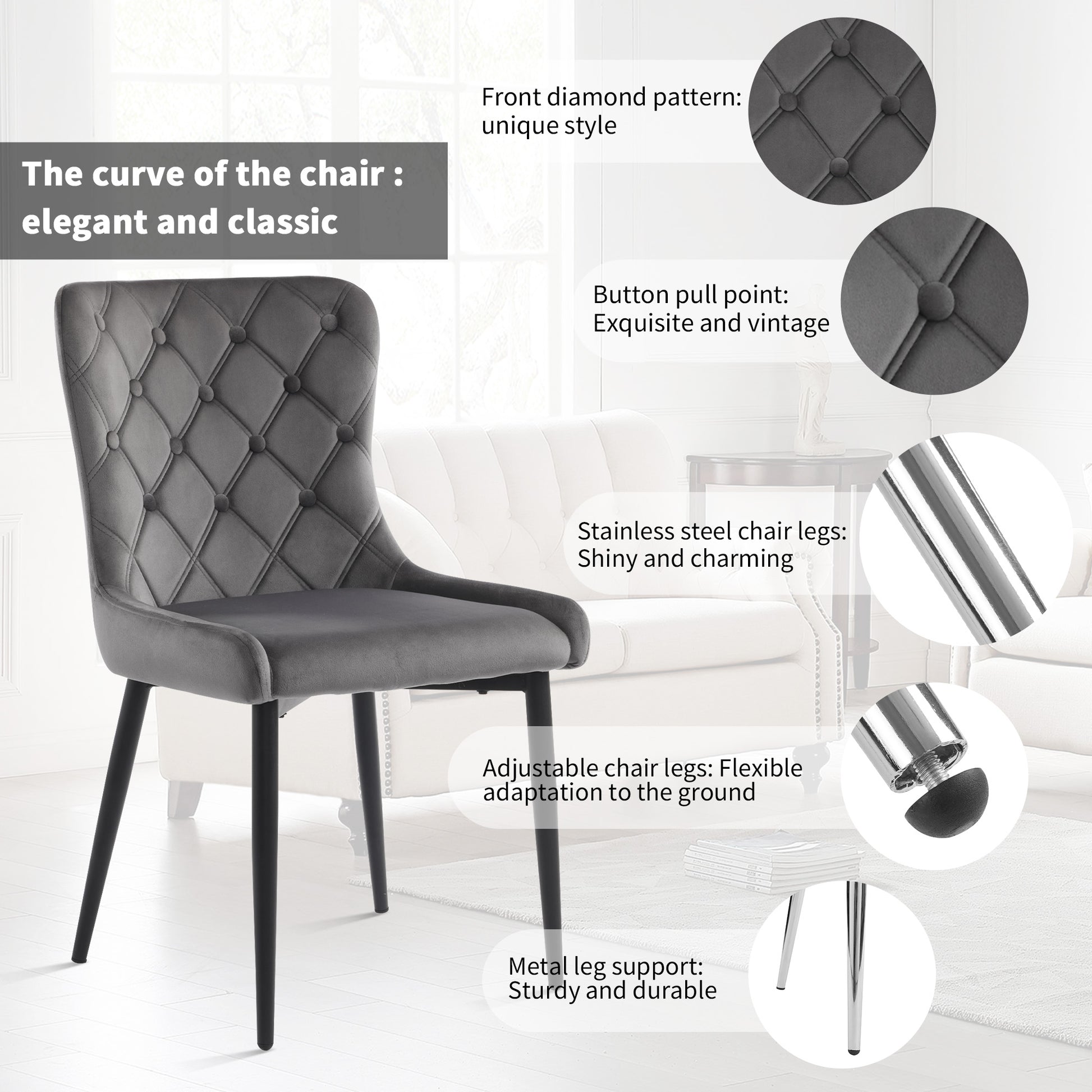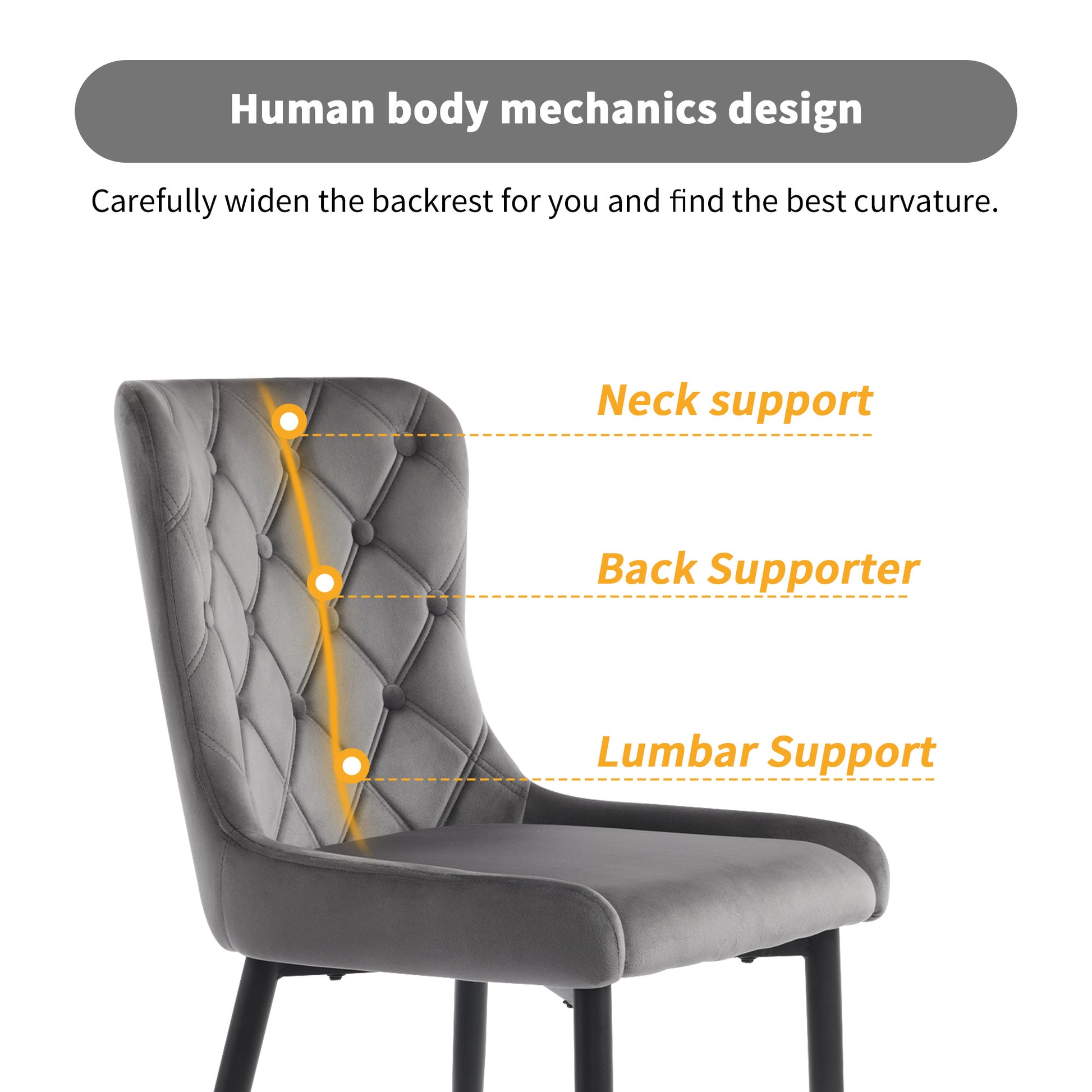 Dining Chairs with Backrest (Set of 2), Velvet Upholstered, Metal, Ergonomic, Dark Gray