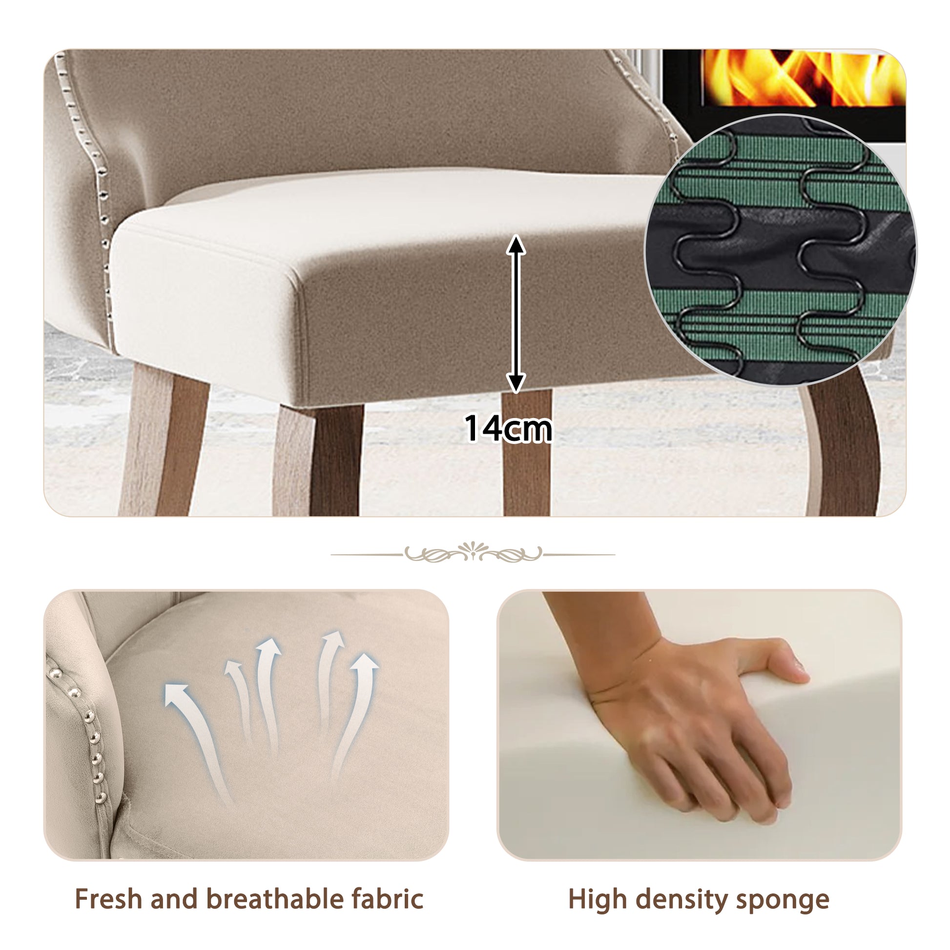 Dining Room Chair (set of 2) - Button Quilted, Nailhead Trim, Velvet, Beige