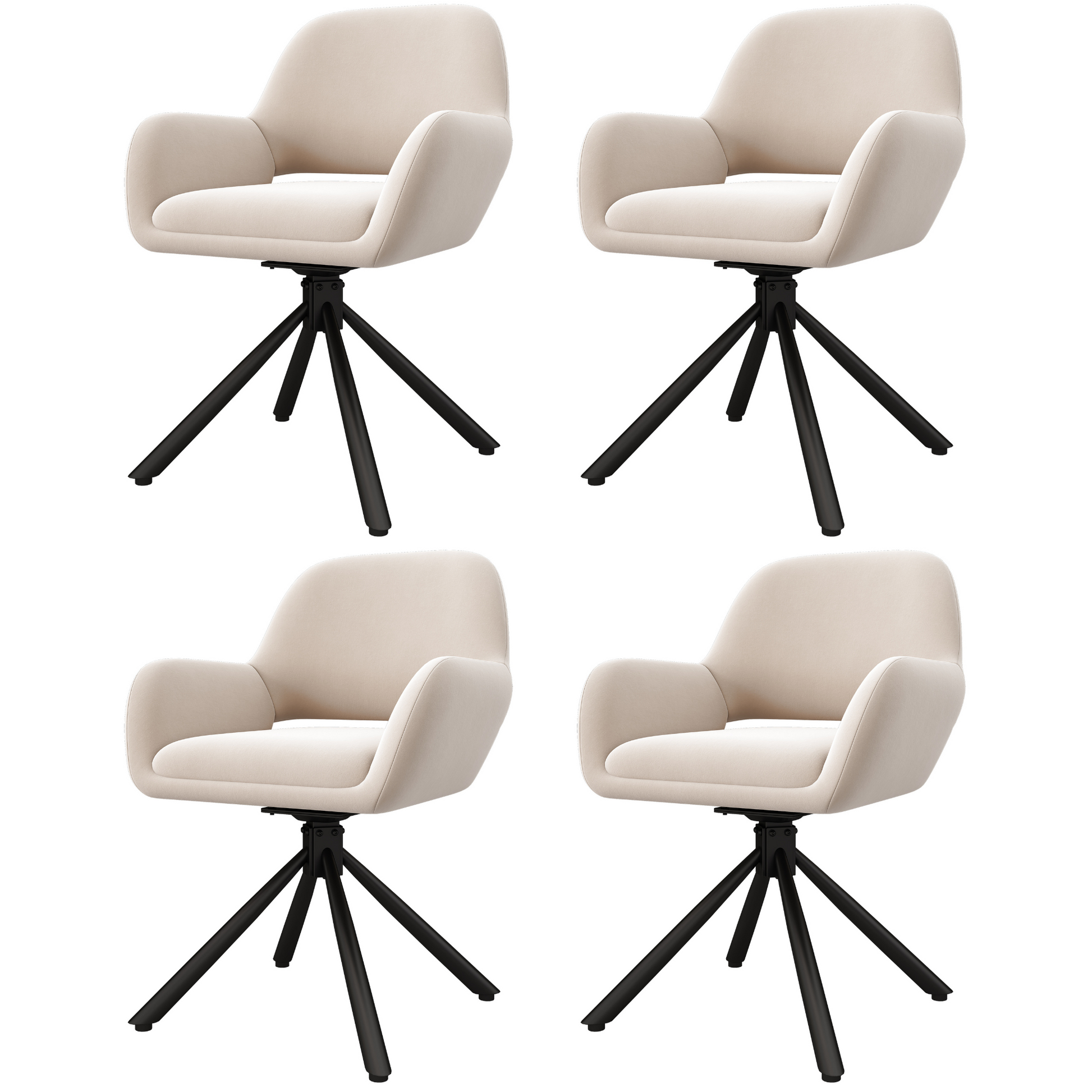 Dining Room Set with Extendable Storage Table and 4 Velvet Chairs, White