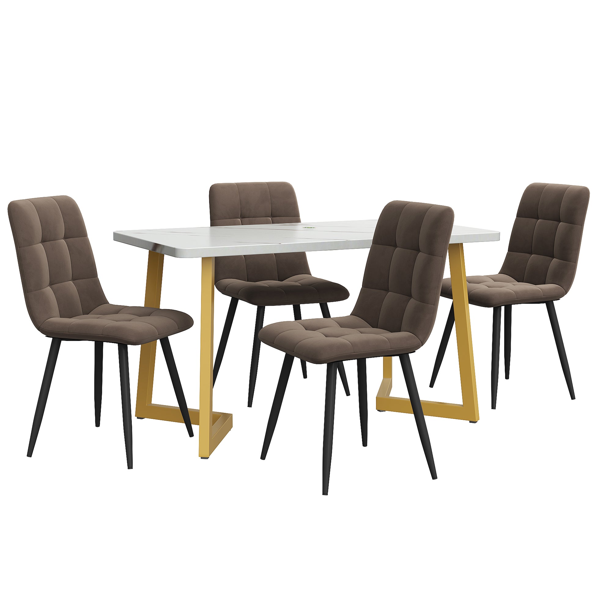 Dining Set, 117x68cm with 4 Chairs, Brown Velvet & Golden Legs